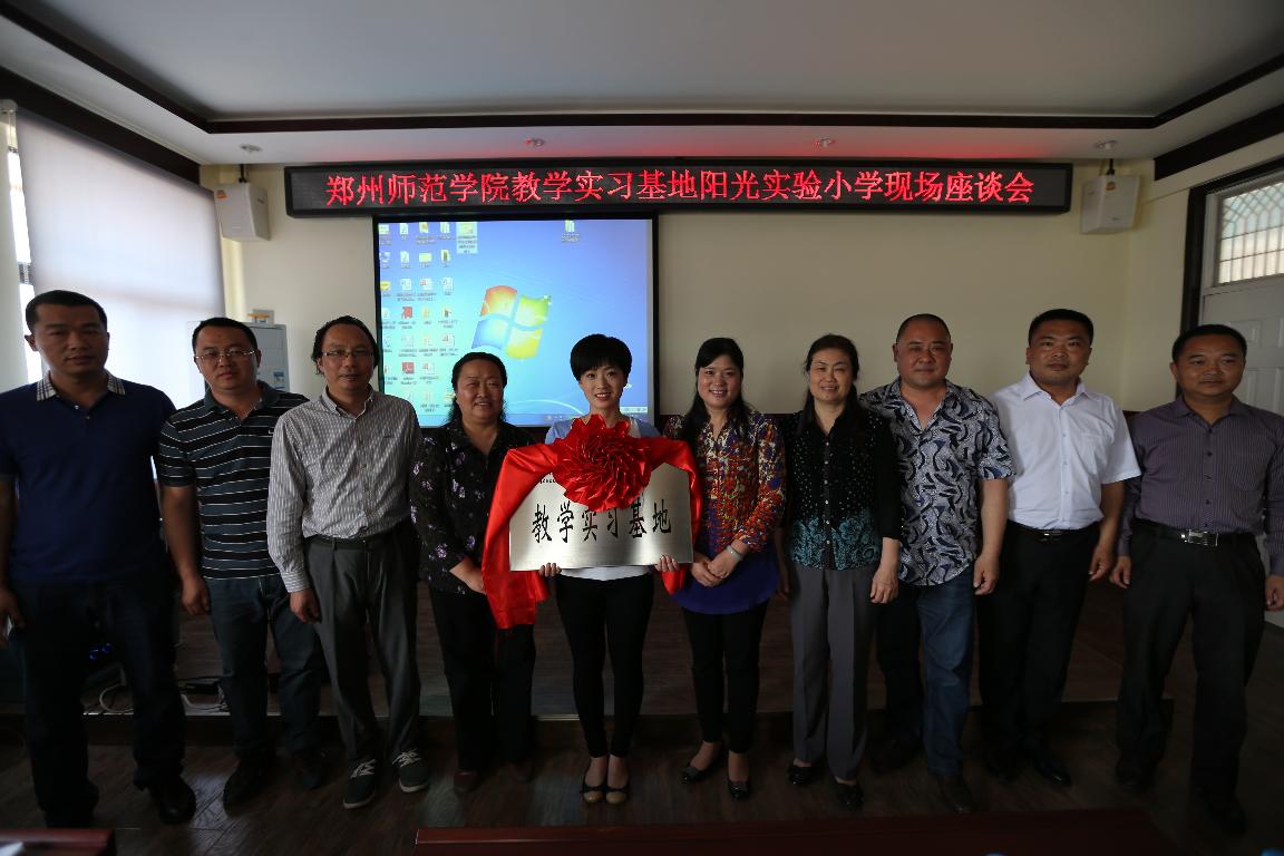 4月29日,在郑州市管城区阳光实验小学举行了“郑州师范学院教学实验基地落户阳光实验小学”揭牌仪式。参加仪式的有郑州管城区教体局刘喜红副局长、教育科科长张进亭、尚庄村村委会、阳光实验小学校长及阳光实验小学部分教师代表。我校党委书记于向英、教务处、后勤处、初等教育学院及相关人员参加了揭牌仪式。初等教育学院院长陈冬花与阳光实验小学校长交换了实习基地协议书,教务处处长盛宾和管城区教体局副局长刘喜红为教学实验基地揭牌。