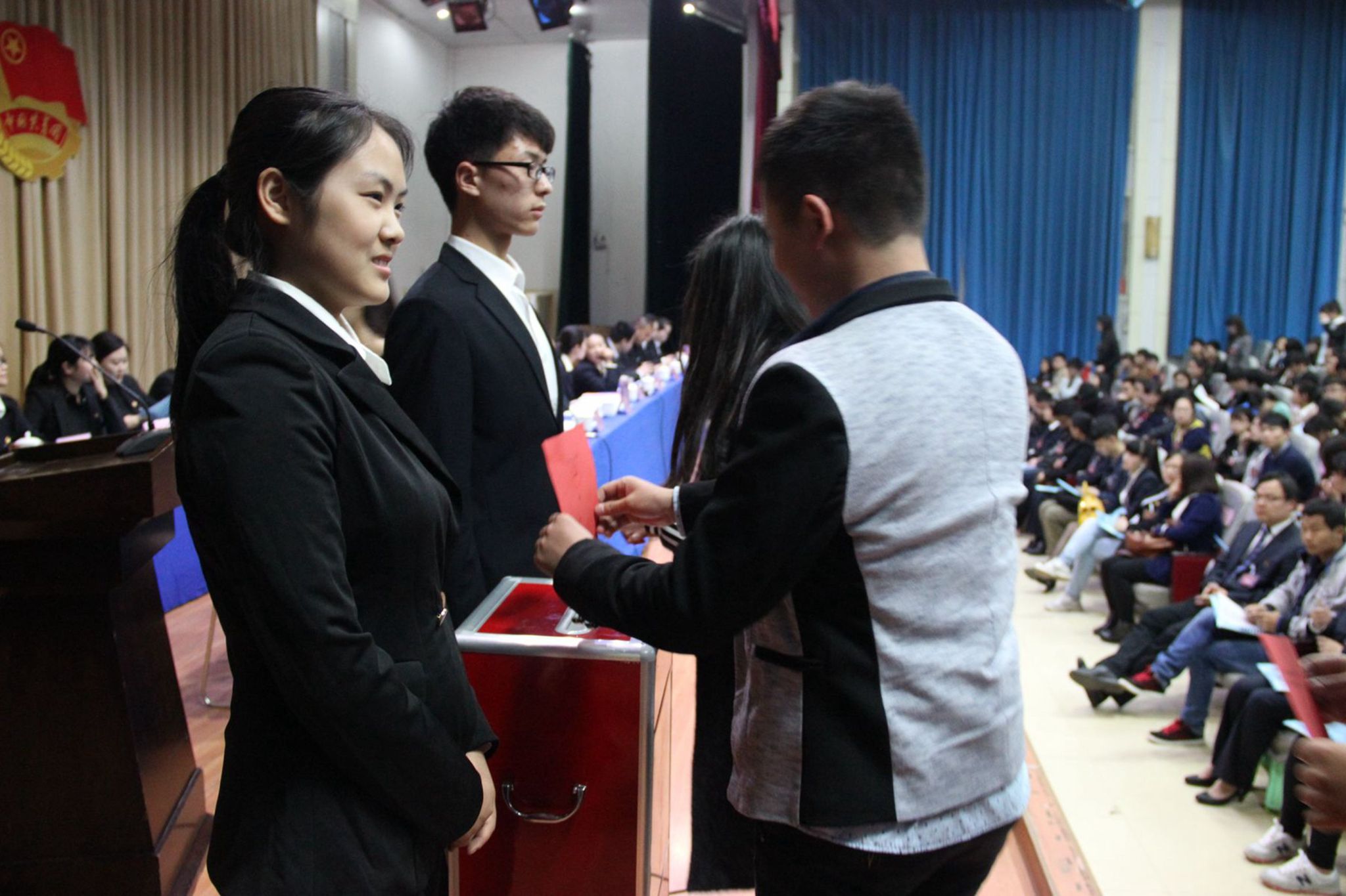 接下来由团委副书记王珊作工作报告,她先对学院团委两年来的工作进行了简单回顾。两年来,我校坚持做到:一、以加强意识形态建设为核心,思想政治教育取得新成效。二、坚持党建带团建,团的自身建设实现新突破。三、以文化育人为主线,校园文化建设再上新台阶。四、积极开展实践育人,为全面提升大学生综合素质奠定基础。随后指出今后的工作任务:一、积极践行社会主义核心价值观,为实现伟大的中国梦筑牢思想基础。二、充分认识新时期创新共青团工作的紧迫性和重要性,持续加强自身组织建设。三、大力开展志愿行动,为我校精神文明建设做出新贡献。四、丰富校园文化建设,营造有利于学生成才的育人环境。五、坚持实践育人,动员组织广大青年为全面建成小康社会做贡献。六、以服务育人为根本,进一步做好青年的权益保障和维护。