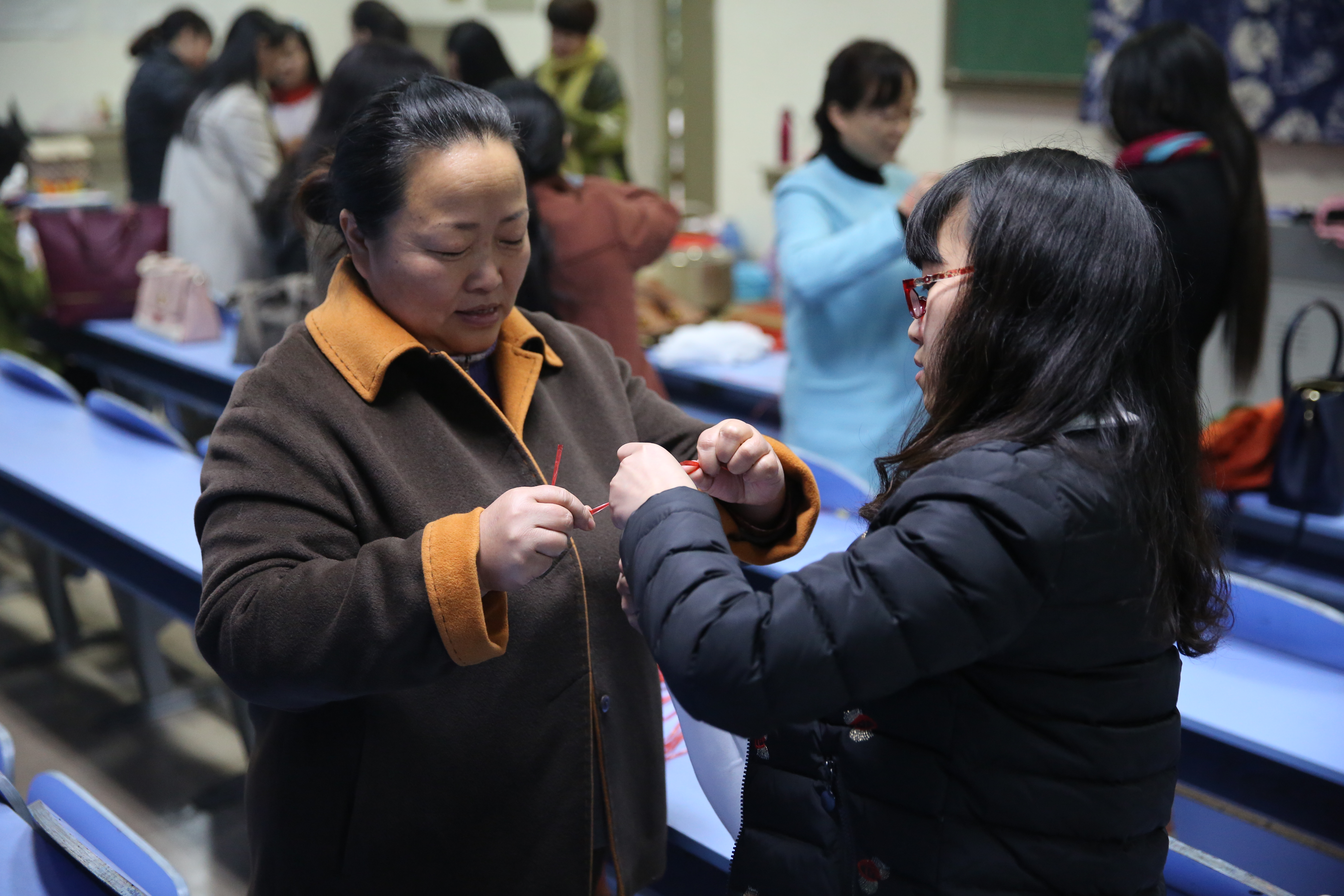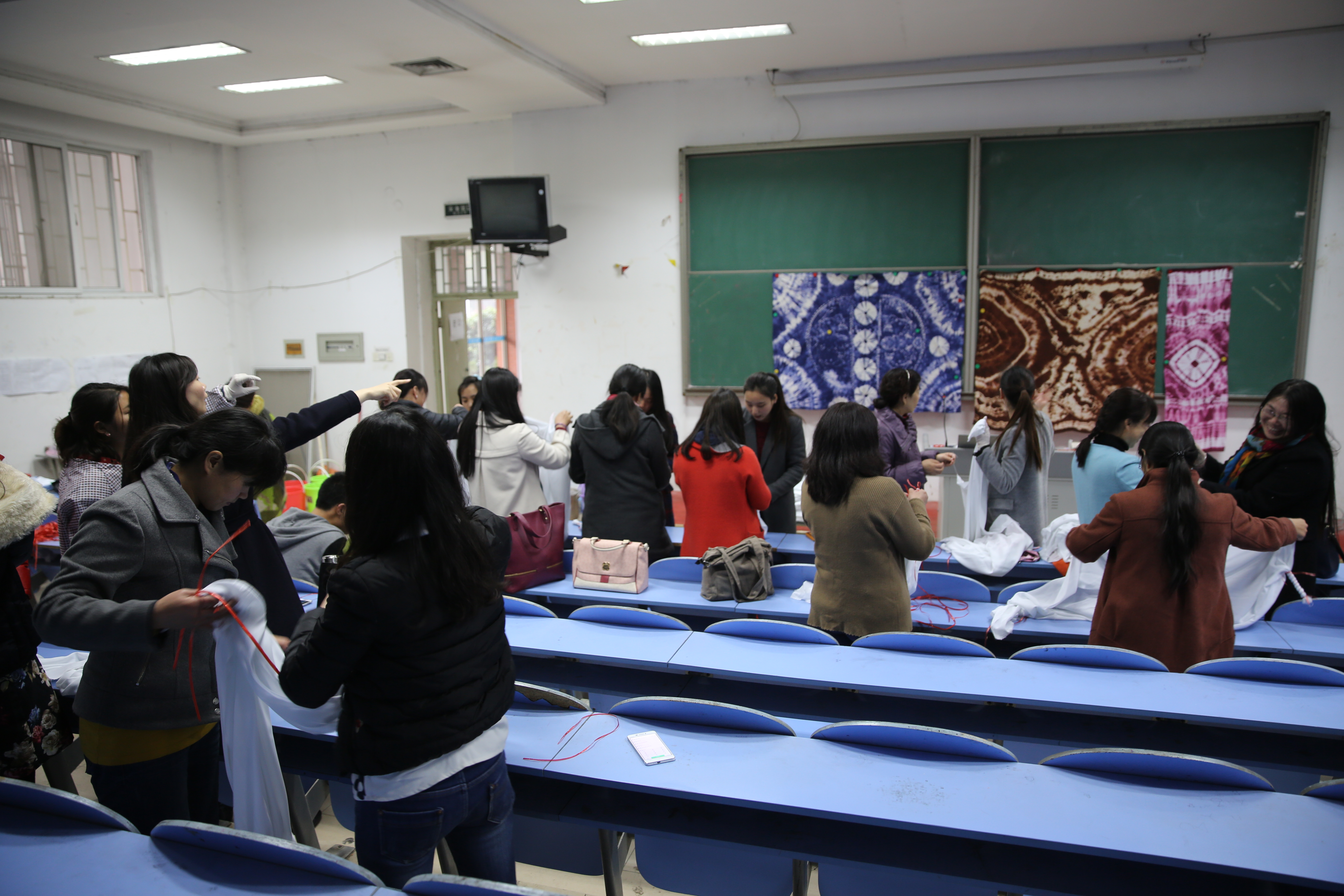 在这莺歌燕舞、万物复苏的阳春三月,迎来了第105个“三八”国际劳动妇女节,为提高我校广大女教职工审美能力,增进相互交流,增强集体凝聚力,近日,在西校区一号楼举办了由我校工会和妇委会联合组织、美术学院主办的扎染知识讲座暨扎染基础教学,参与此次活动的是我校的女博士和女教授们。校党委书记于向英也在百忙之中特意抽出时间参加了此次活动。