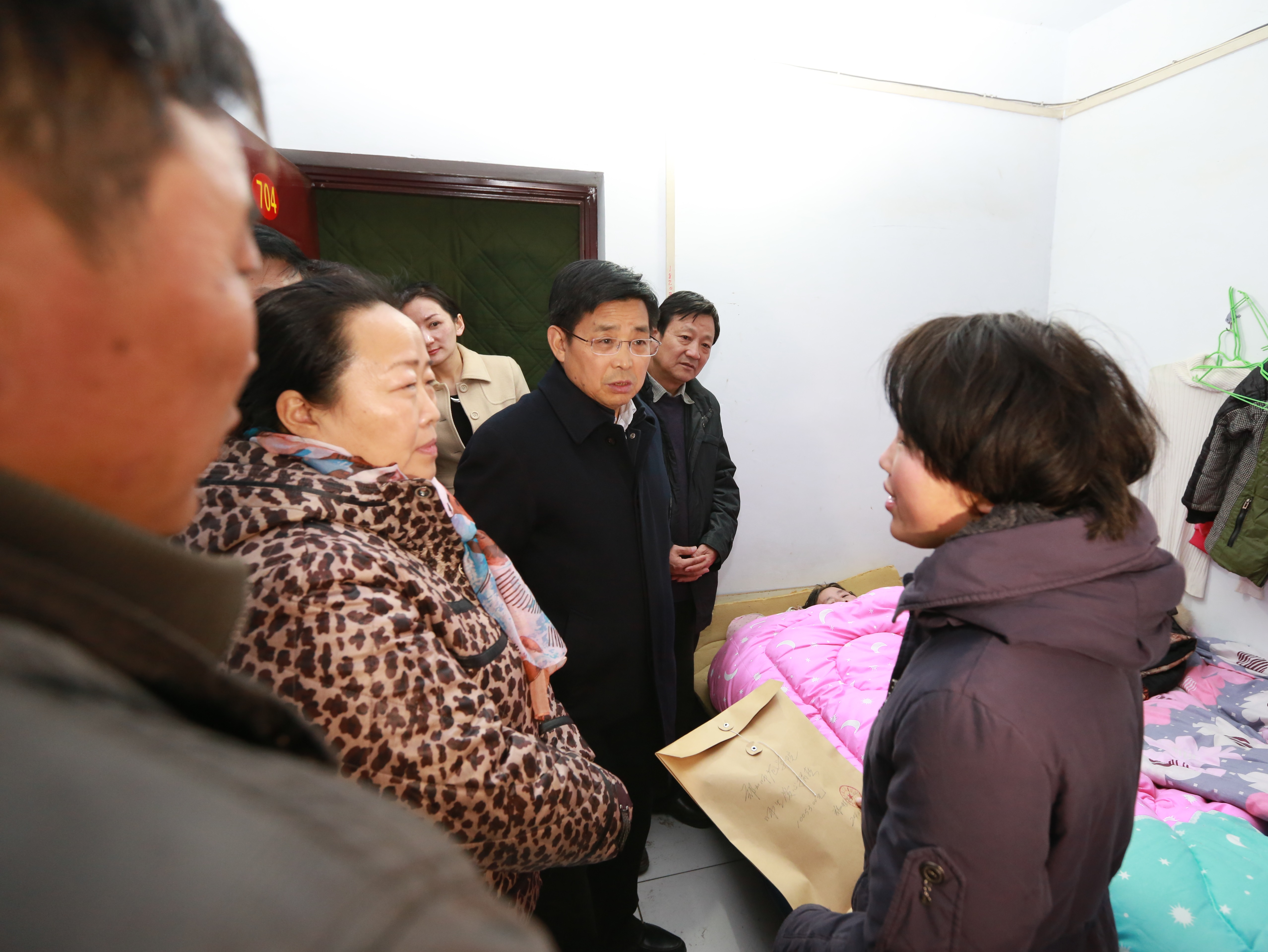 12月26日,党委书记于向英、校长赵健在党政办、工会、学生处、生命科学学院有关人员的陪同下,来到我校生命科学学院2014级生物科学2班底慧敏位于杓袁村的租住地看望她的父母。