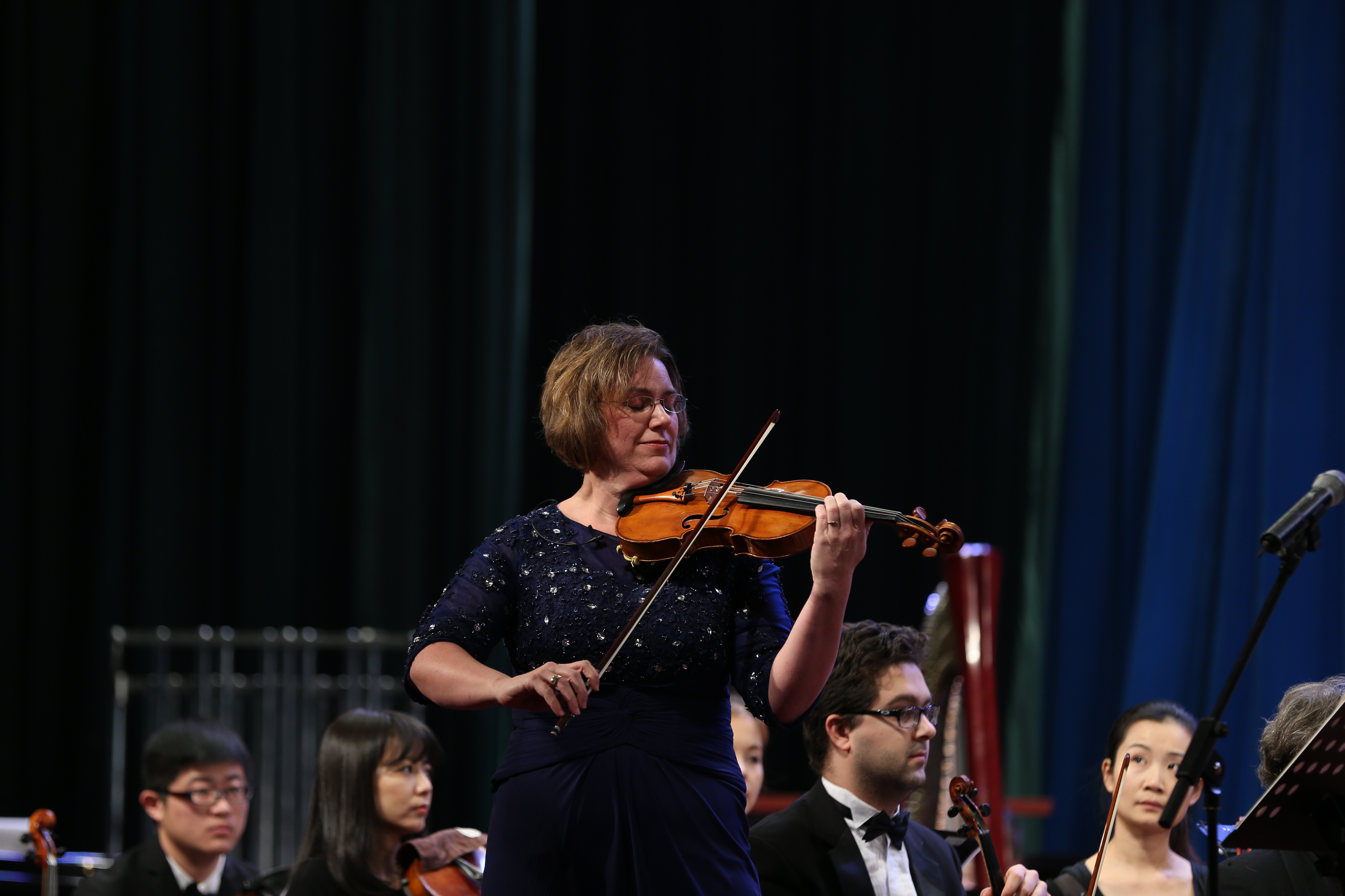 演出在表现着普天同庆、万民欢腾的乐曲的《节日序曲》中拉开了的序幕,整个现场充满了欢快的节日氛围。由我校青年教师李雯演唱的《春天的芭蕾》以民歌为依托,传达出浓厚的中华民族审美情趣,以诗意的表达方式谱写和谐华美的旋律,把春天的活力和欢快表现的淋漓尽致。美国小提琴家带来了我国经典的小提琴协奏曲《梁祝》,这一段柔美凄美的旋律不知打动了多少人的心。法国作曲家比才创作的歌剧《卡门》中的《斗牛士进行曲》备受大家关注,我校青年教师王媛媛演唱的咏叹调《爱情像自由的小鸟》把现场的气氛一次次推向高潮。我校青年教师肖扬的女高音独唱《我亲爱的爸爸》选自普契尼所创作的歌剧《贾尼·斯基基》,旋律优美,深情而动人。《瑶族舞曲》是由我国著名作曲家刘铁山所创作的,表达了能歌善舞的民俗,为我们带来了少数民族的生活情貌。在观众阵阵热烈的掌声中,交响乐团以一曲节奏活跃的《匈牙利舞曲第五号》为本场音乐会拉下了帷幕。
