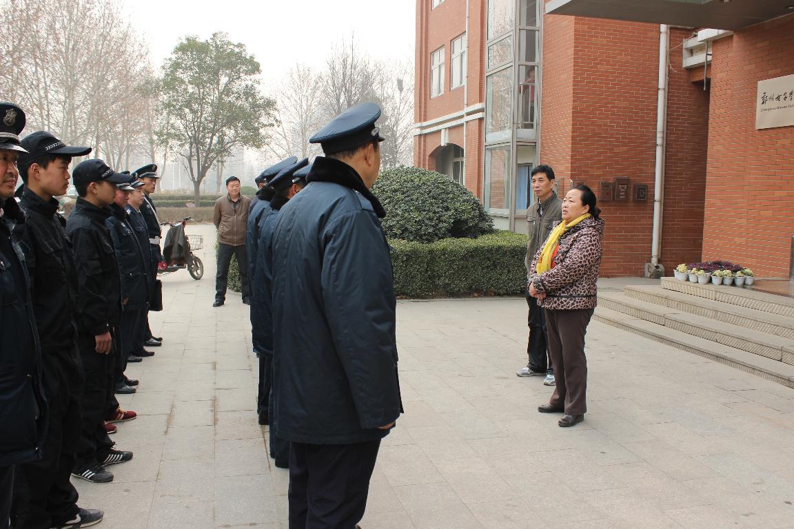 于书记对保卫处保安队员辛勤的工作给予了充分肯定,对他们在过去一年来对学校治安保卫工作做出的贡献提出表扬,希望他们在新的一年继续发扬吃苦耐劳的精神,为学校的发展做出贡献。并祝大家春节愉快、吉祥幸福。