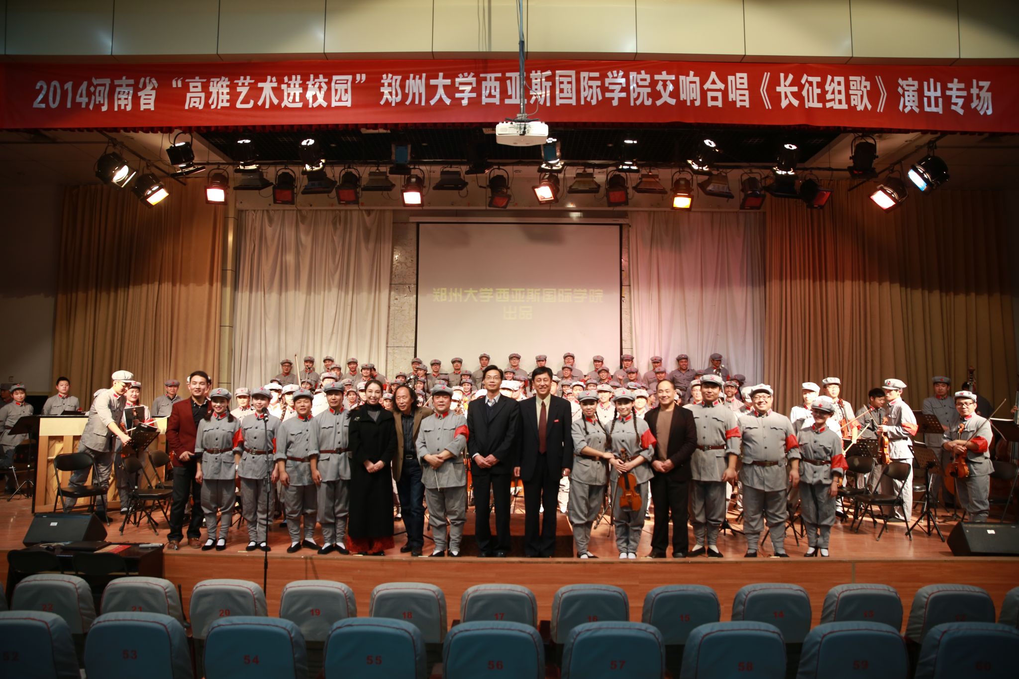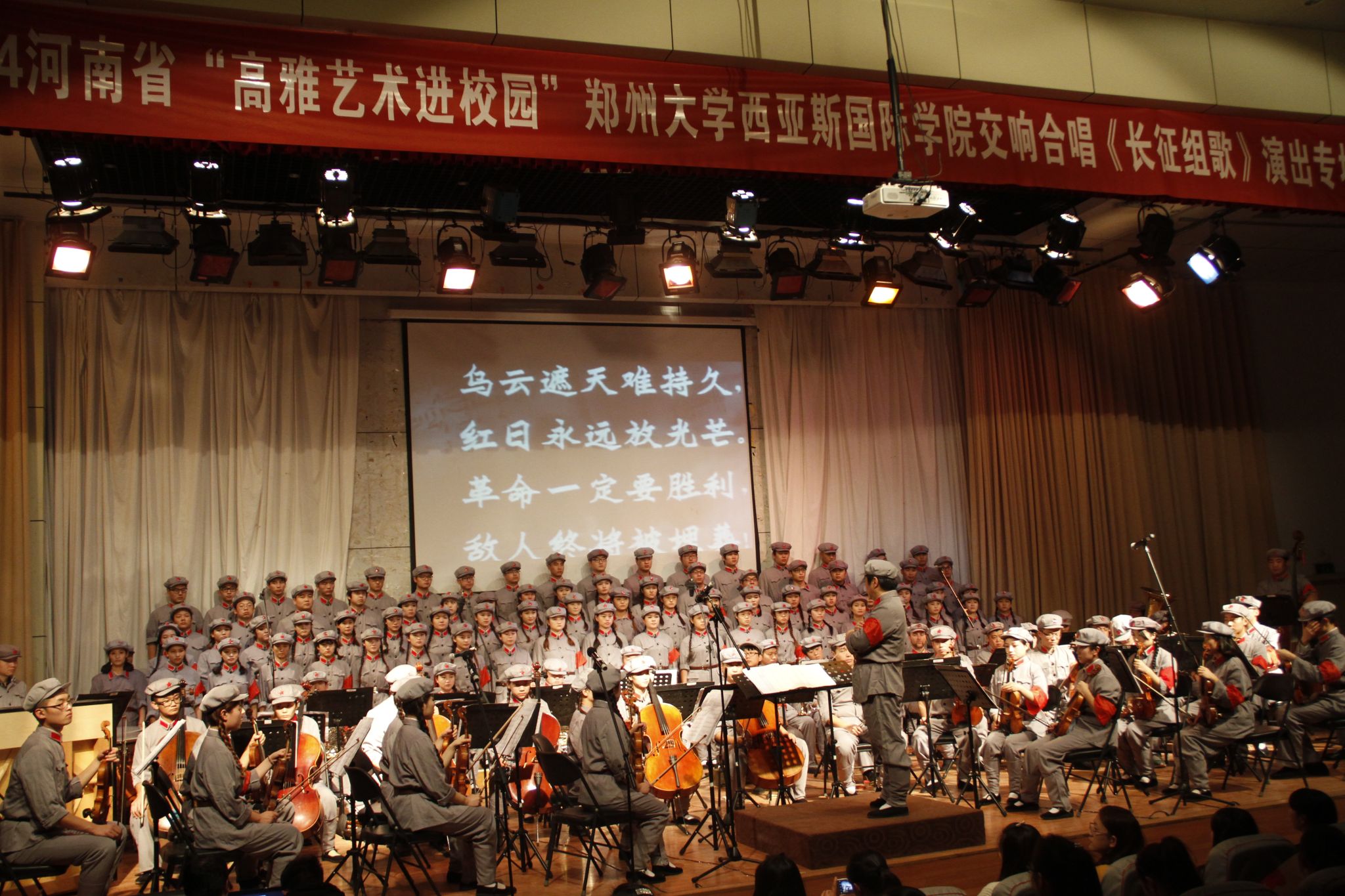 11月11日下午,2014年“高雅艺术进校园”——郑州大学西亚斯国际学院交响合唱《长征组歌》专场演出在我校7号报告厅举行。院党委副书记、工会主席弓民,郑州大学西亚斯国际学院党委书记费鹤翔以及我校近600名师生共同观看了本次演出。