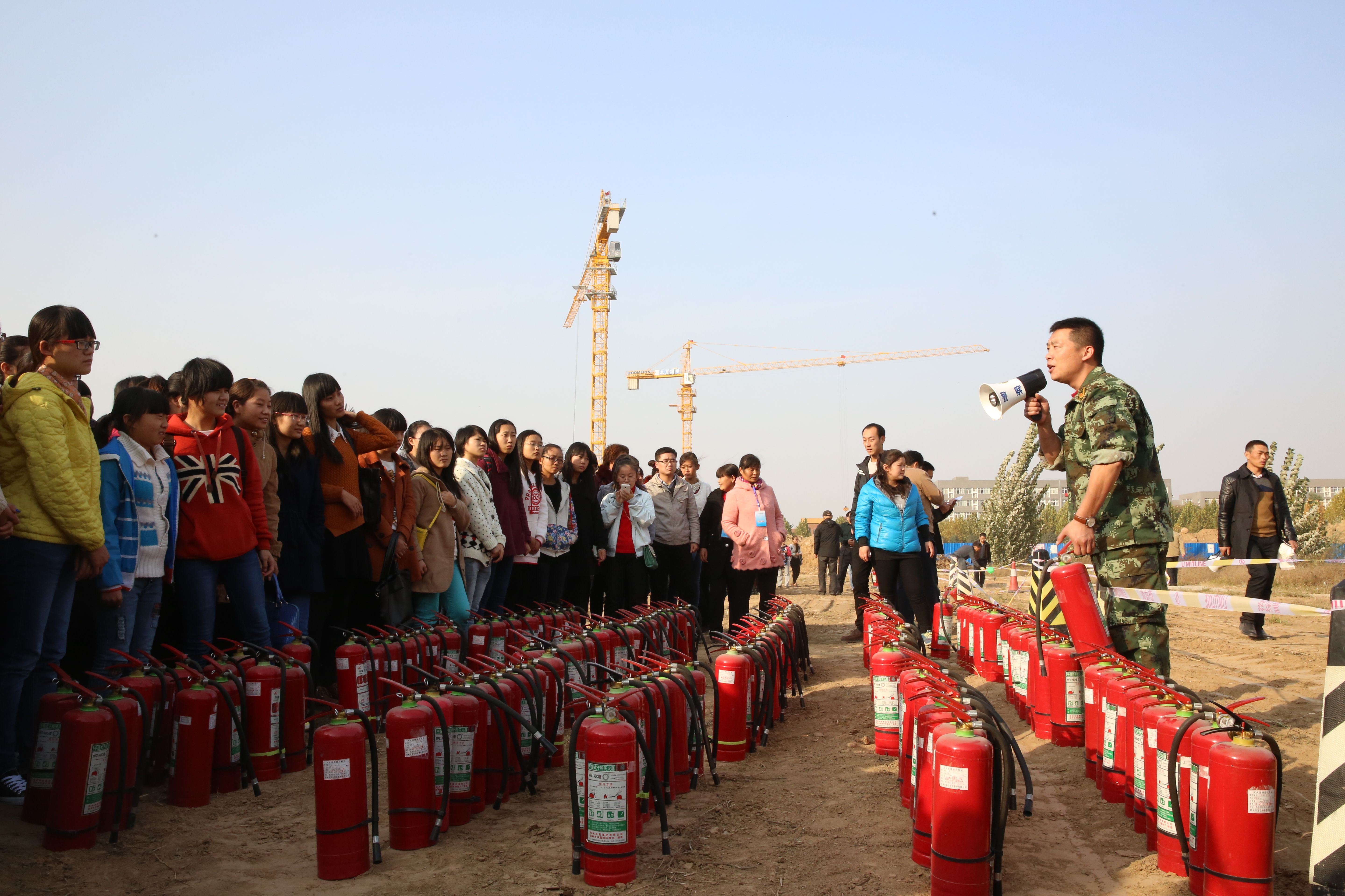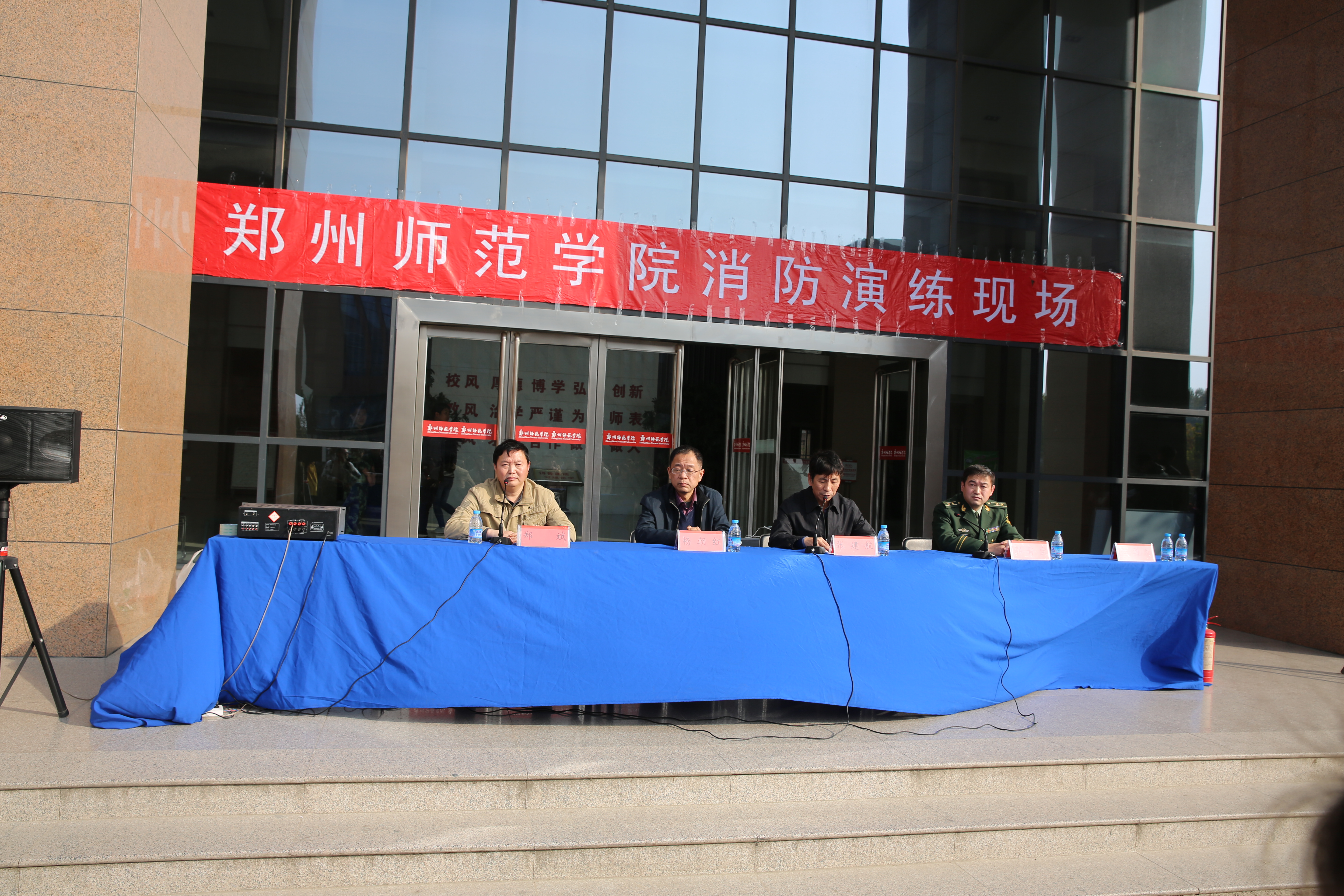 为认真开展全国第二十四个“119”消防宣传月活动,切实增强广大师生的消防安全意识和应对火灾突发事件应急处置能力,全力打造平安师院,11月11日下午,我校在东校区公共教学楼举行大型综合消防演练。副校长张建航,惠济区消防大队教导员郭晋宝,校内各单位安全员、学生治保委员、学生宿舍寝室长代表及宿管中心、图书馆、公共教学楼等消防重点部位工作人员和部分学院师生1600多人参加了此次活动。