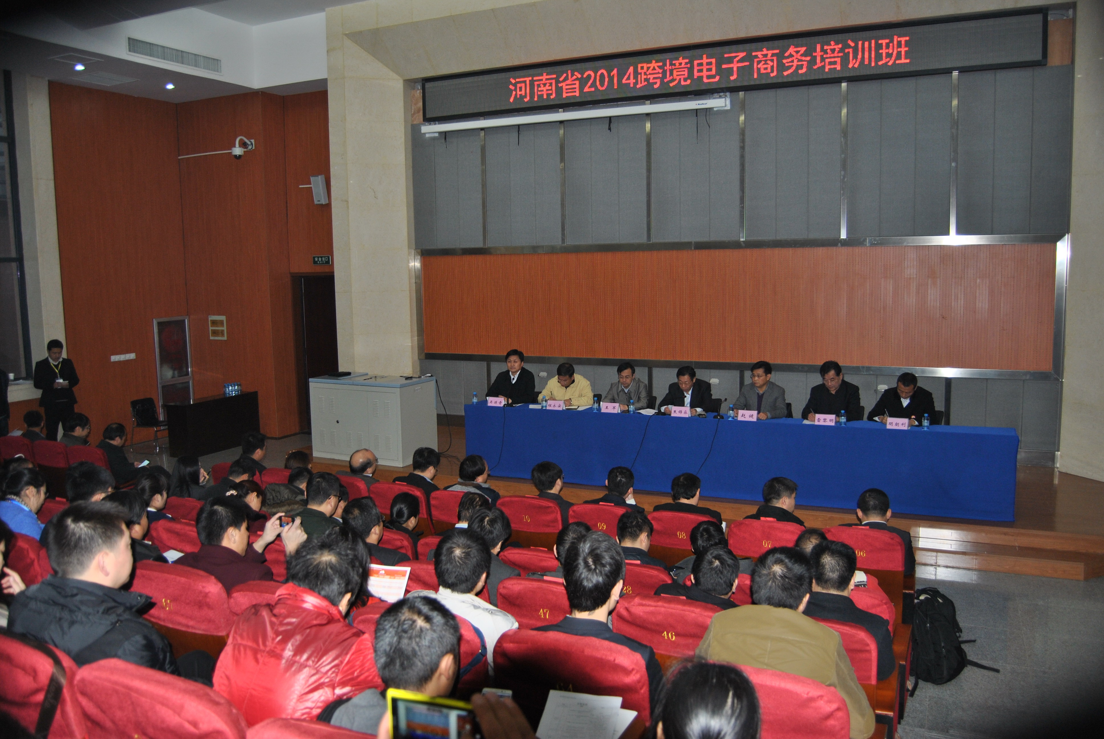11月23日上午,河南省2014跨境电子商务培训班在我校举行开班典礼。此次培训班由河南省商务厅主办,郑州师范学院和河南省网络营销协会协办。河南省商务厅厅长焦锦淼、郑州师范学院校长赵健、河南省商务厅相关负责人、来自全省18个地市商务局的相关负责同志和豫企代表300余人共同出席了开班仪式。