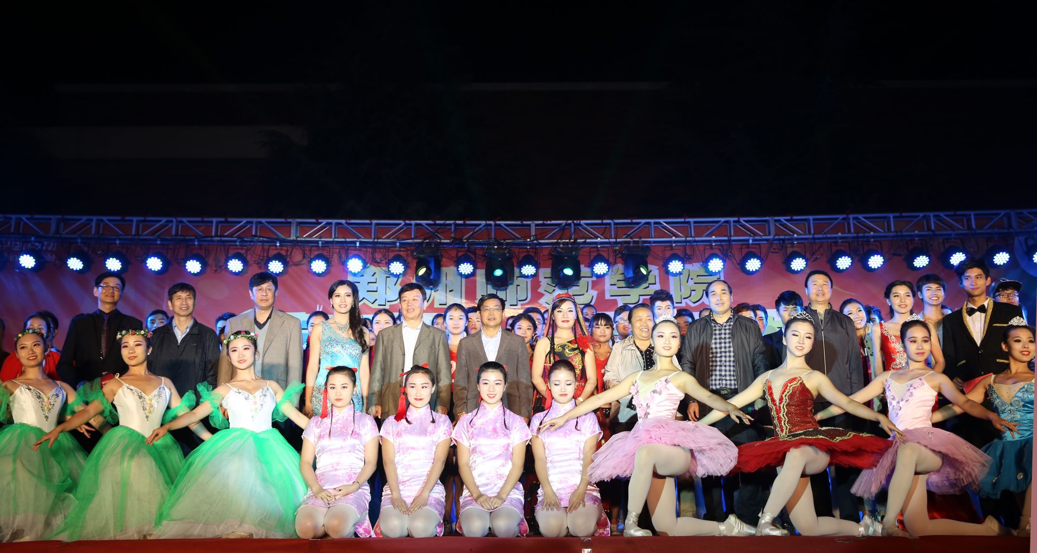 演出结束后,院党委书记于向英与表演同学及工作人员亲切合影留念,并对晚会给予了十分的肯定和欣赏,表达了对工作人员的关心慰问,最后勉励学生在今后的学习生活中再接再厉,为学校的发展增光添彩。