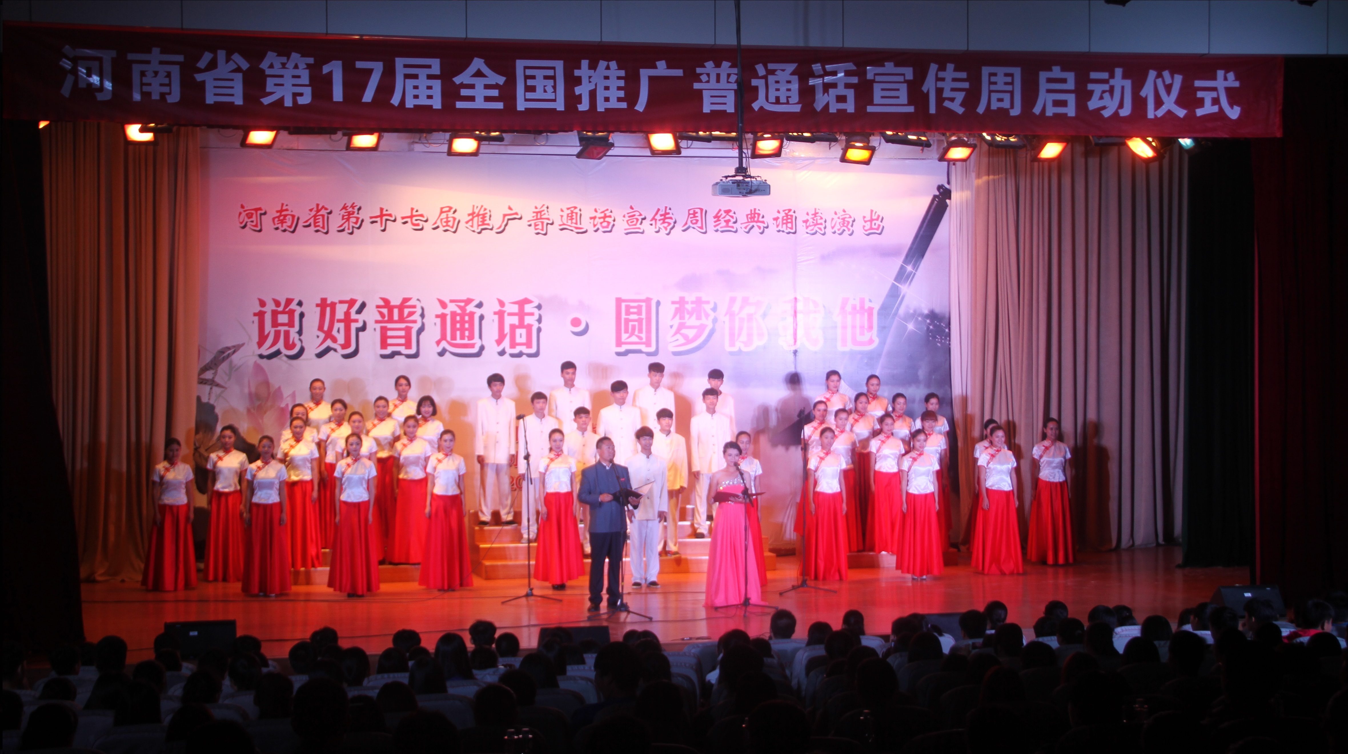 接下来,教育厅副巡视员刘湘平和党委书记于向英共同启动了河南省第十七届推广普通话宣传周活动。