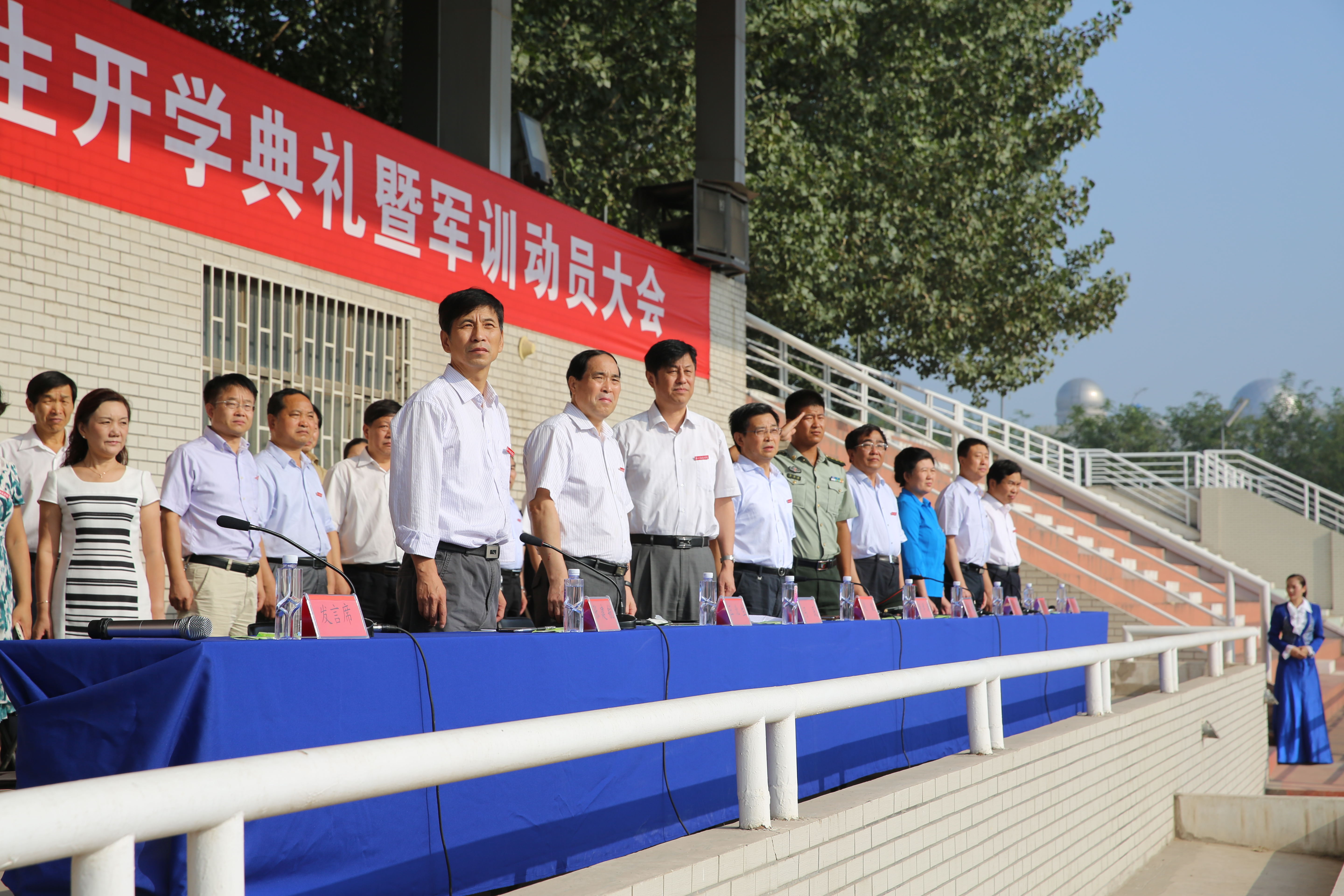 9月3日上午,2014级新生开学典礼暨军训动员大会在我校体育场举行。党委副书记、校长赵健,工会主席弓民,纪委书记翟幸福,副院长王北生、蒋丽珠、孔青、贾敏仁、张建航等出席会议。各处室、系部负责人,承训单位中国人民解放军河南省高炮二团领导、教官以及全体2014级新生参加大会。开学典礼由张建航主持。