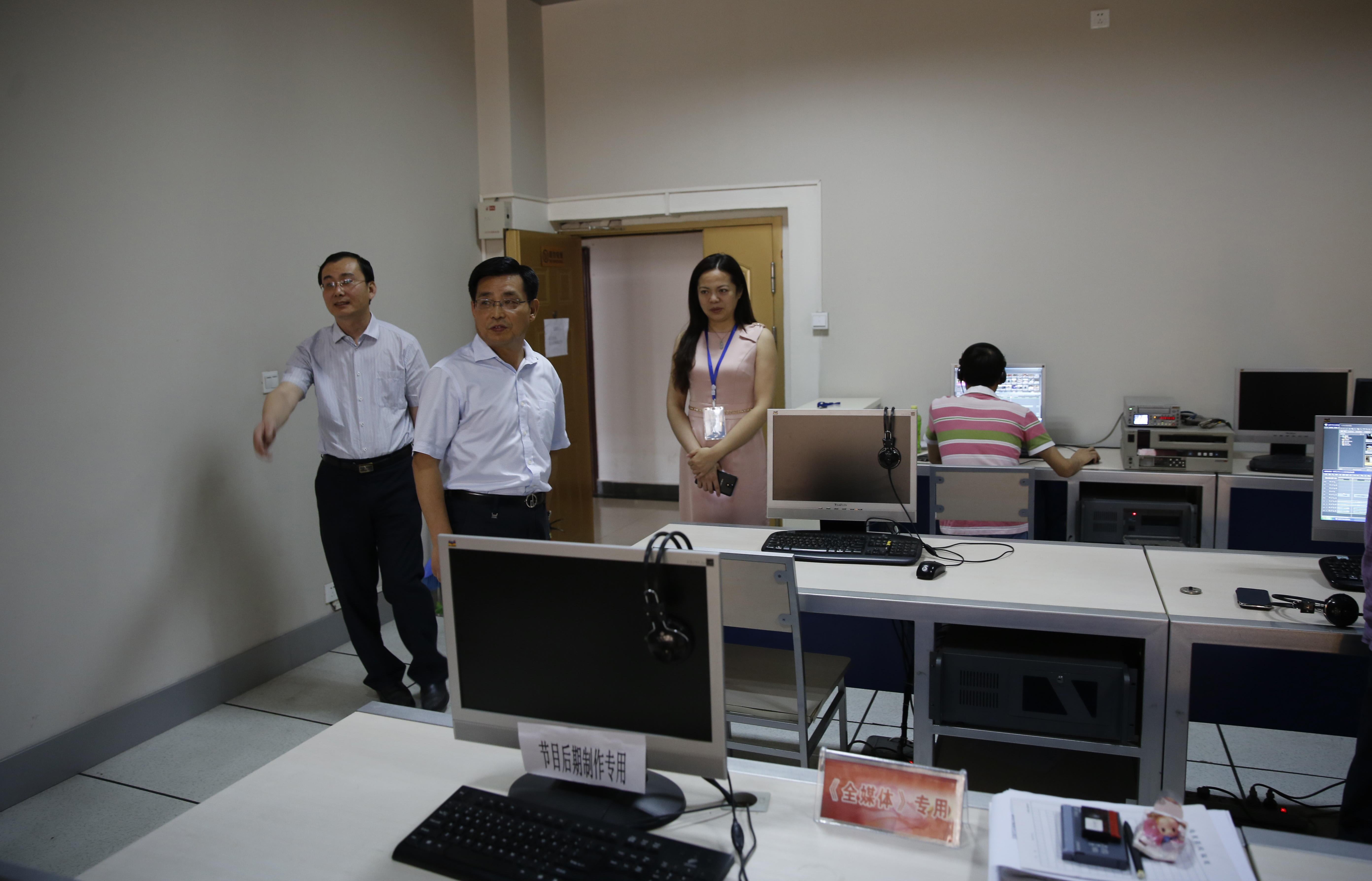 录制结束后,赵校长在郑州教育电视台副台长李素玉的陪同下参观了编辑室和全媒体工作中心。期间,赵校长还就我校新设置的新闻传播学院的学生实习和培养目标方向与电视台的专业人士进行了沟通了解。