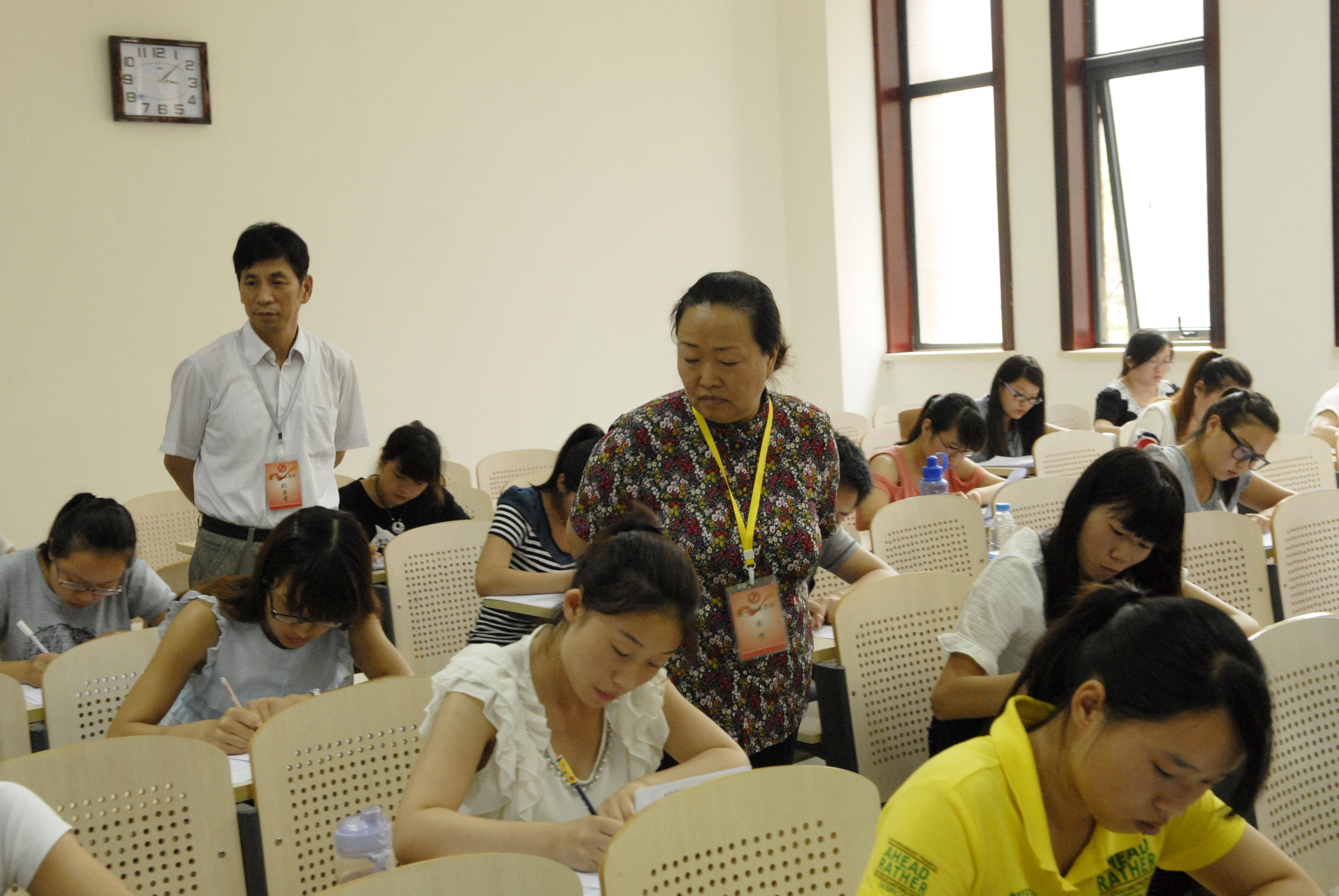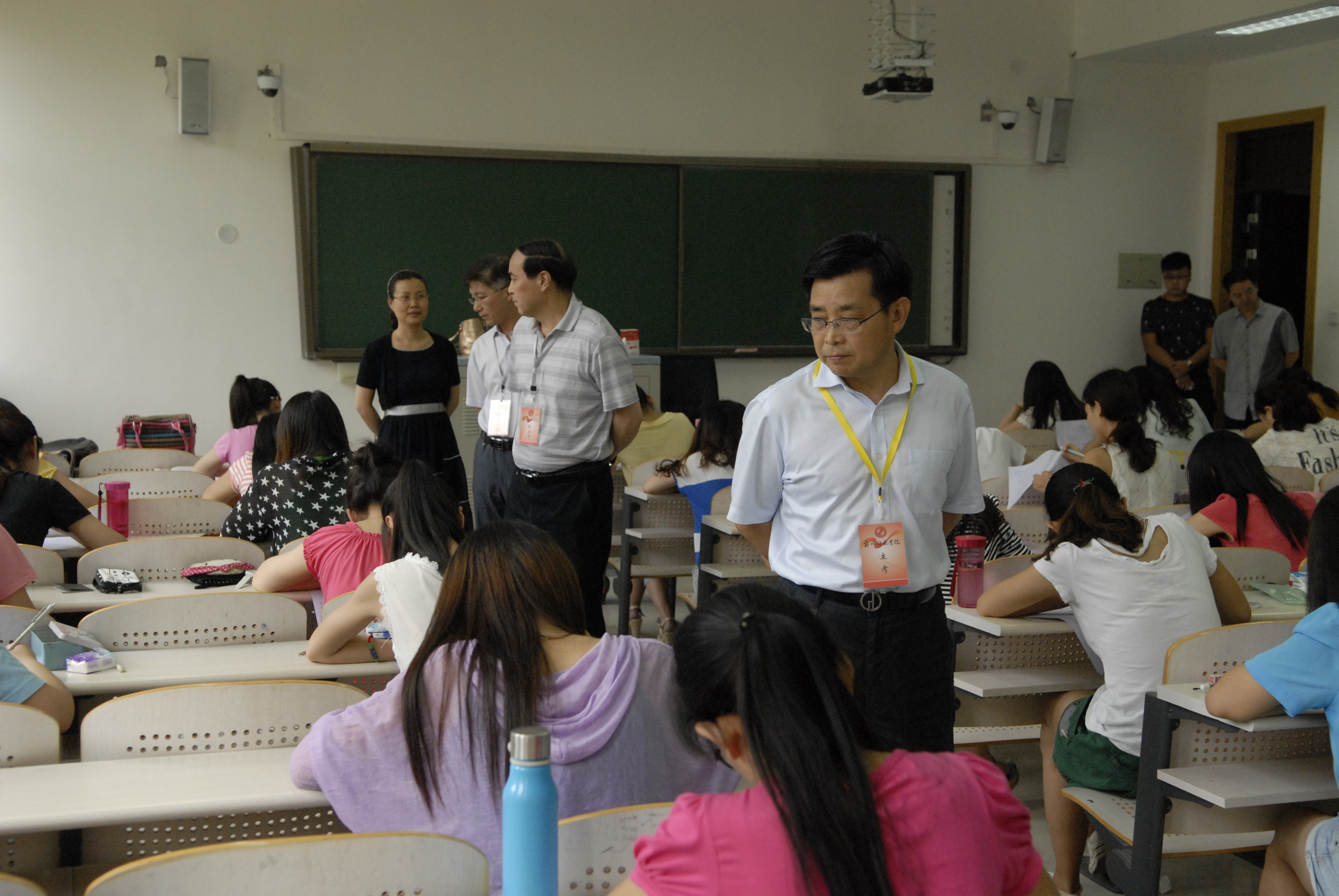 6月24日下午,党委书记于向英、副校长张建航由党政办、教务处相关人员陪同到公共教学楼各考场巡考。巡考前,于书记听取了教务处对我校期末考试情况的总体安排。在巡考过程中,于书记一行巡视了在公共教学楼考试的所有学院考点,认真查看了考场布置、试卷、监考等情况。于书记对考试工作表示满意,并指出,期末考试是学校教学工作的重要环节,要严抓考试纪律,监考教师要按时准点上岗,认真履行监考职责,确保考场秩序,进一步营造良好的考试环境。