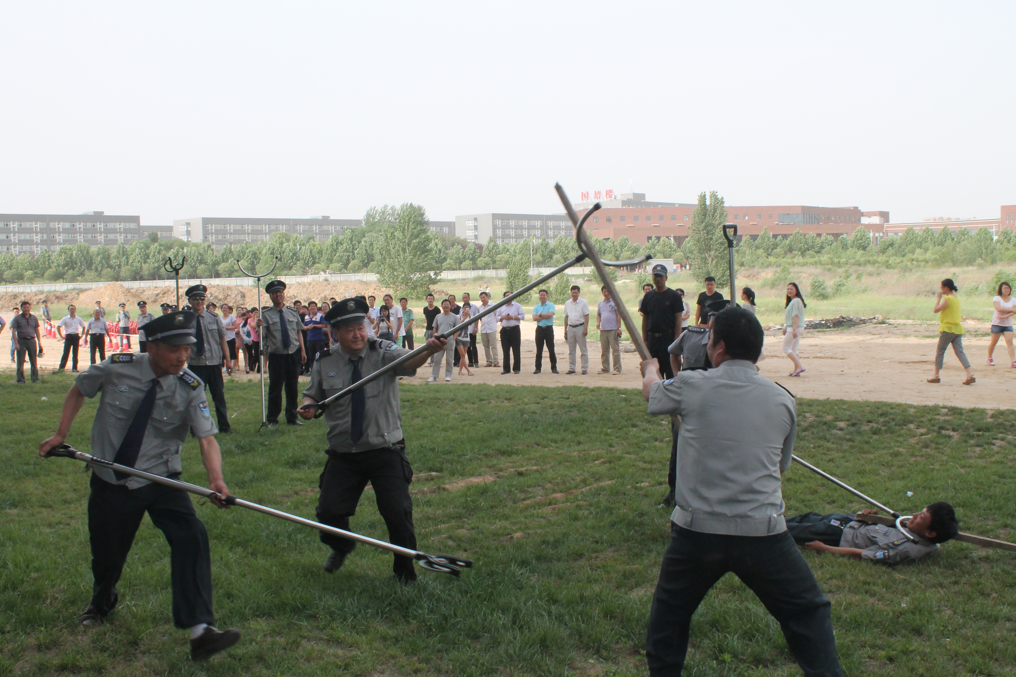 5月27日下午,我校在东校区举行了一次校园安全突发事件应急处置及消防灭火演练。副校长张建航、校内各消防安全重点单位工作人员、部分院(系)师生及保卫处全体人员参加了此次演练。