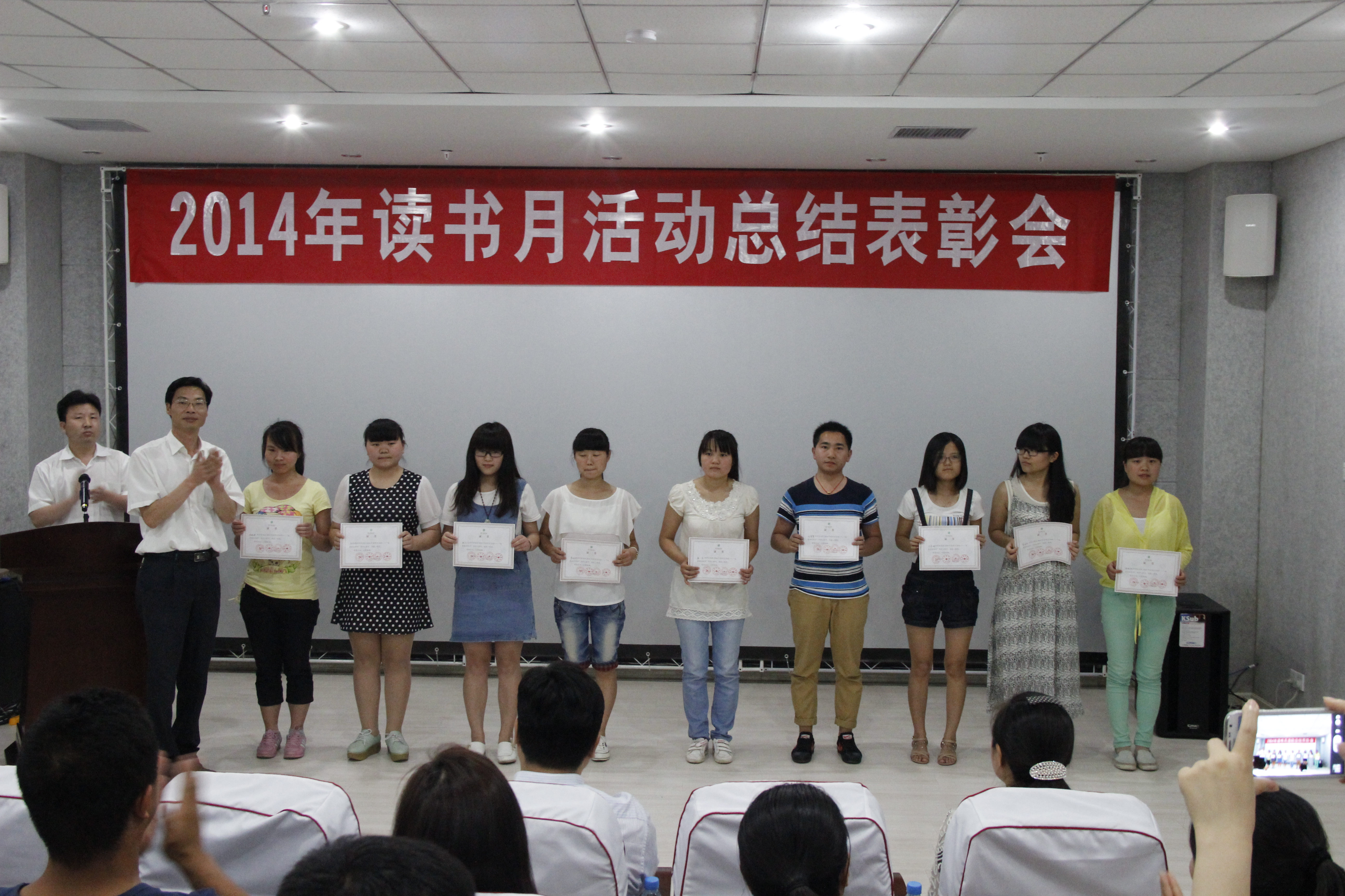 5月28日下午,我校2014 年读书月活动总结表彰会在图书馆一楼视听中心隆重举行,副校长贾敏仁、校党委宣传部、校团委、学生处和图书馆的负责人出席了活动。会上,对获奖的先进个人和初等教育学院、文学院、教育科学学院、化学系优秀组织单位进行了表彰。