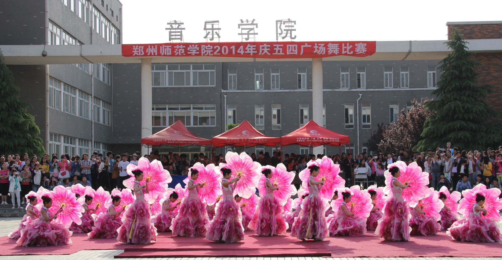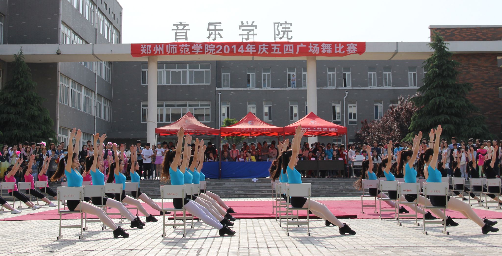 为了重温先烈用生命熔铸的进取奉献精神,高举“爱国、进步、民主、科学”的精神火炬,我校于5月4日下午在西校区音乐广场举办了2014年庆“五四”广场舞比赛。校党委书记于向英,部分院系党总支书记,校团委副书记王珊以及各院系团总支书记出席此次活动。音乐学院张春禾教授,舞蹈系姬宁老师,公共艺术教学部张璇老师担任本次比赛的评委。