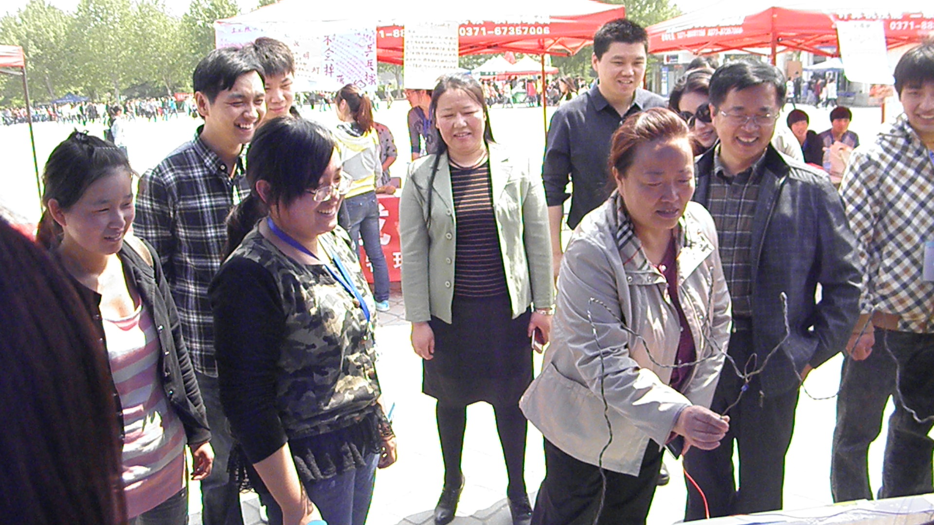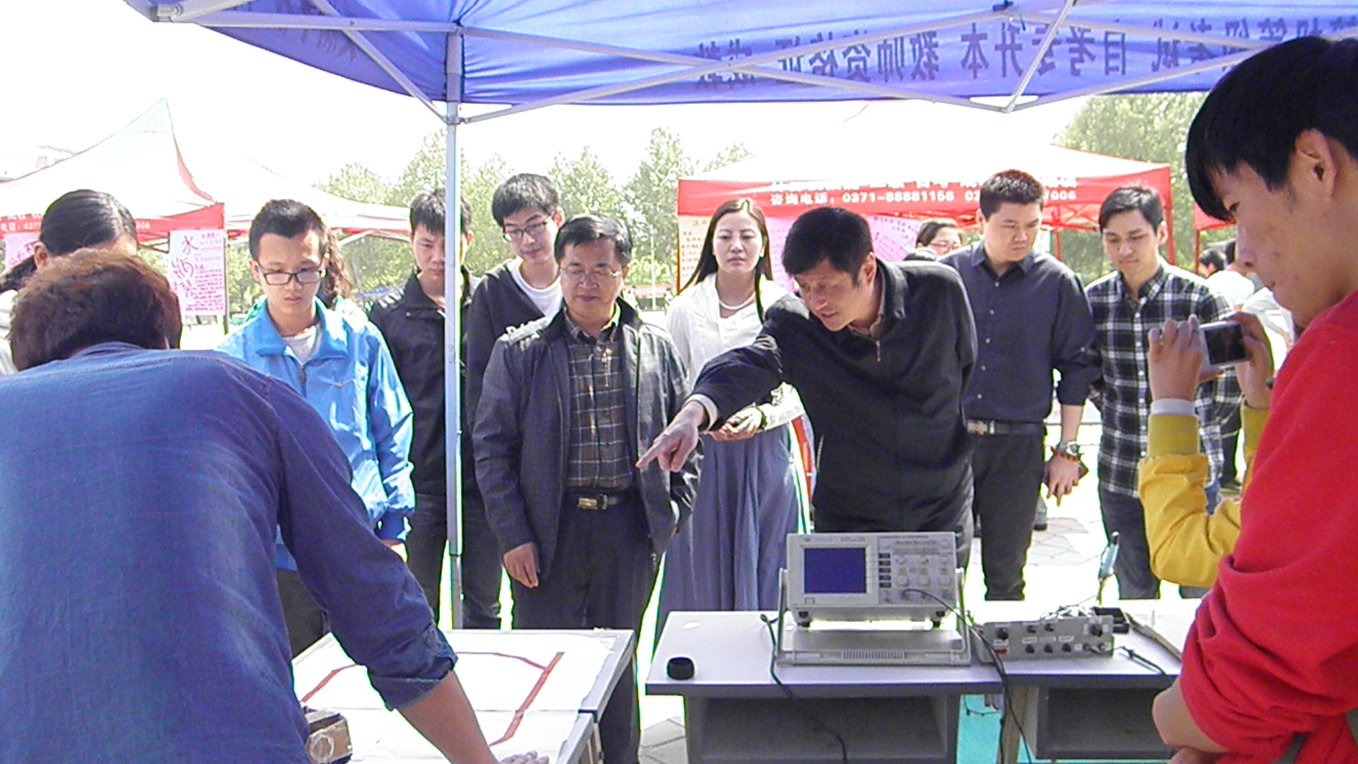 4月22日上午,我校物理与电子科学系学生科技活动作品在西校区广场进行展出,这次活动共展出学生科技作品24件,全部为学生结合所学专业知识,简易取材,制作而成。党委书记于向英,党委副书记、工会主席弓民,副校长张建航出席了作品展。