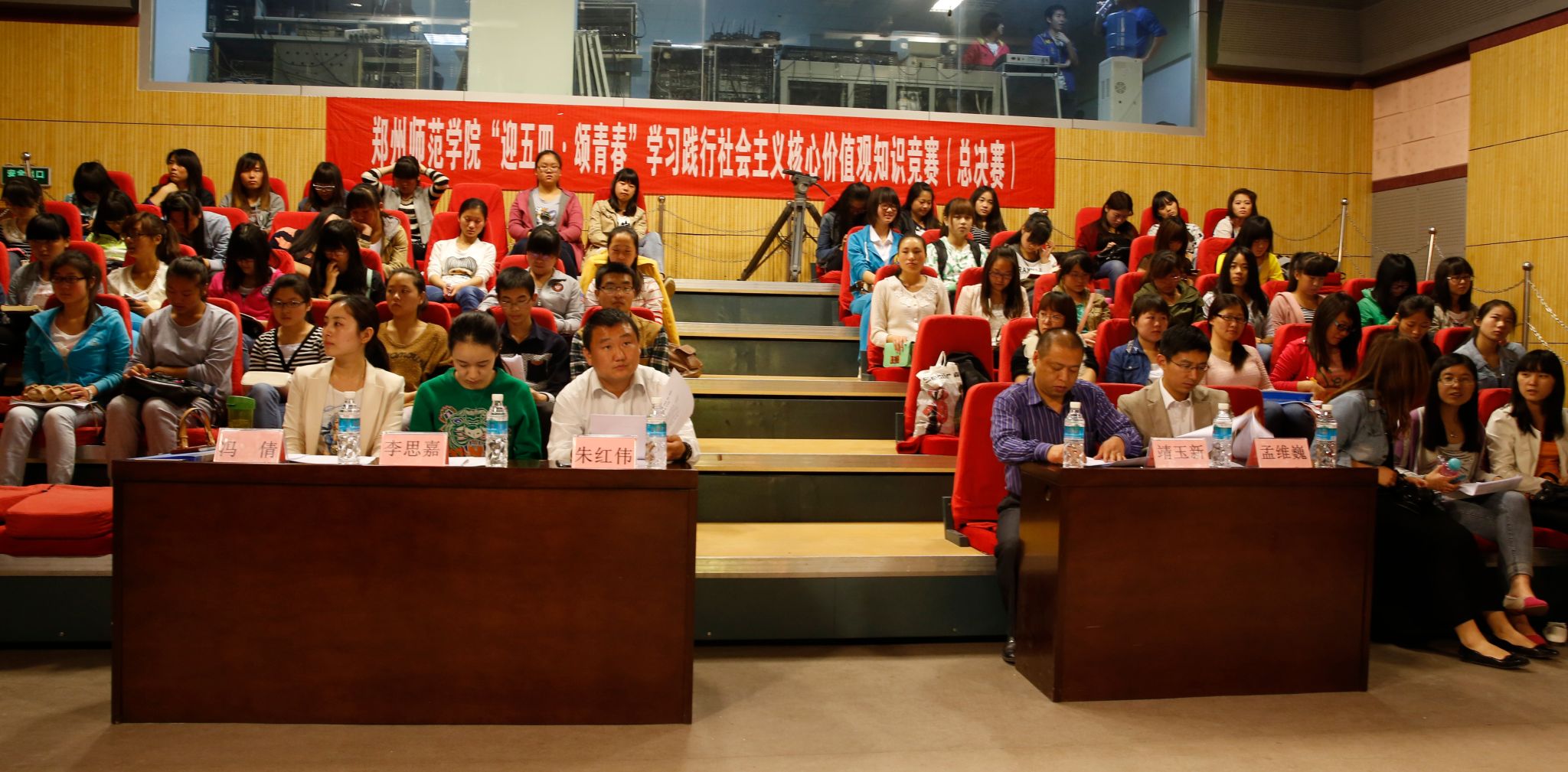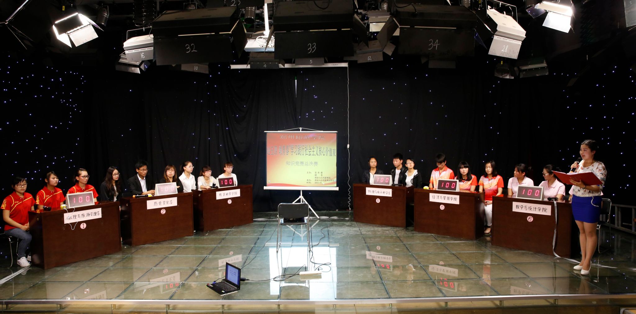 为深入贯彻落实党的十八大精神,践行社会主义核心价值观,4月23日下午,由我校宣传部、团委和政治与公共管理系联合主办,我系团总支承办的“迎五四·颂青春”学习践行社会主义核心价值观知识竞赛在图书馆十楼演播厅圆满落下帷幕。