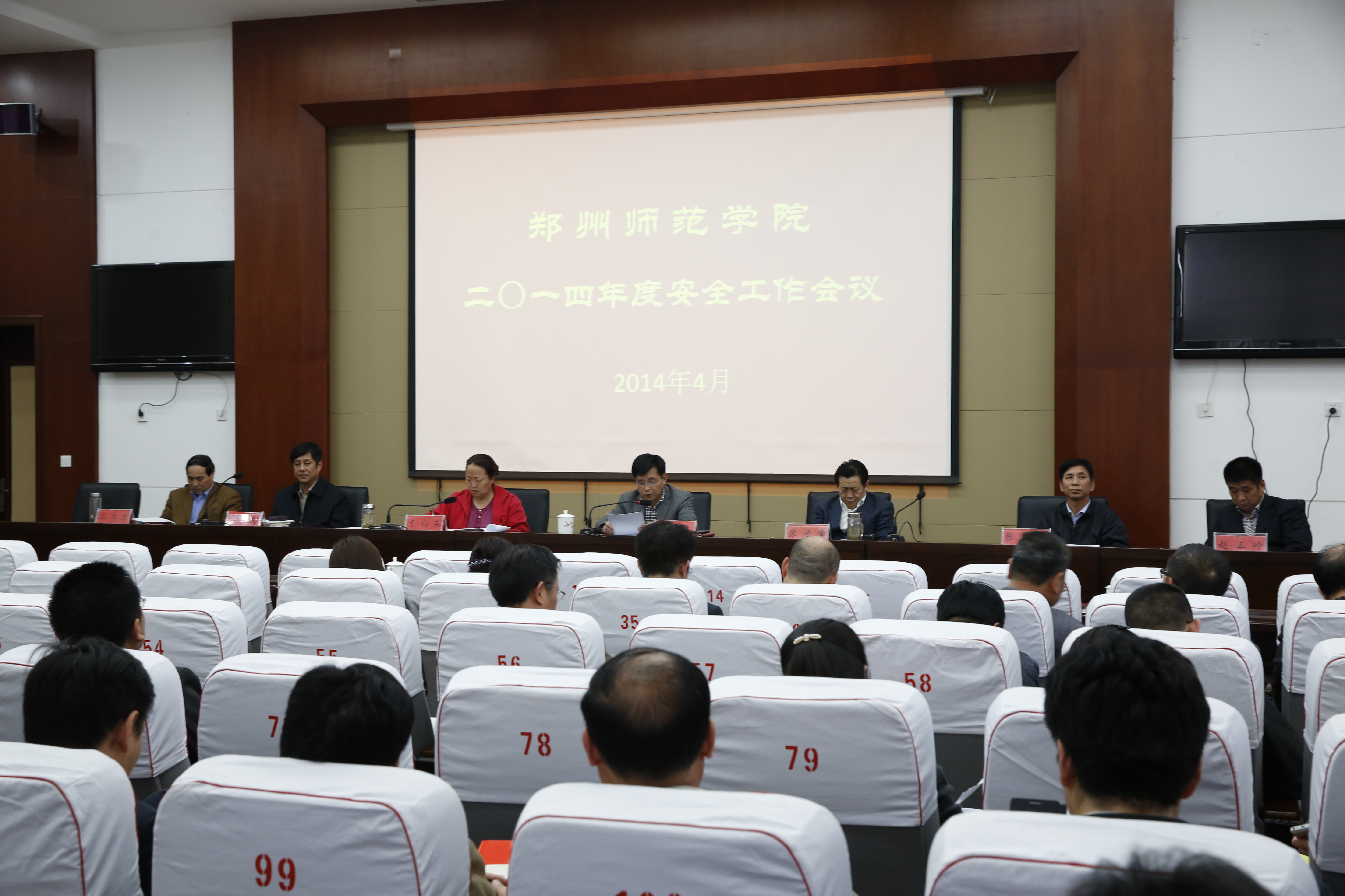 首先,副校长张建航宣读了《郑州师范学院关于表彰2013年度“平安校园建设先进单位”的决定》,校领导为受到表彰的文学院、数学与统计学院、教育科学学院、政治与公共管理系、教务处、财务处颁发了荣誉奖牌。随后,校长赵健代表学校与校内单位代表签订了2014年度校园综合治理和平安校园建设工作目标责任书。最后,赵健校长对学校上年度校园安全工作进行了全面总结,并安排部署了本年度全校安全稳定工作。
