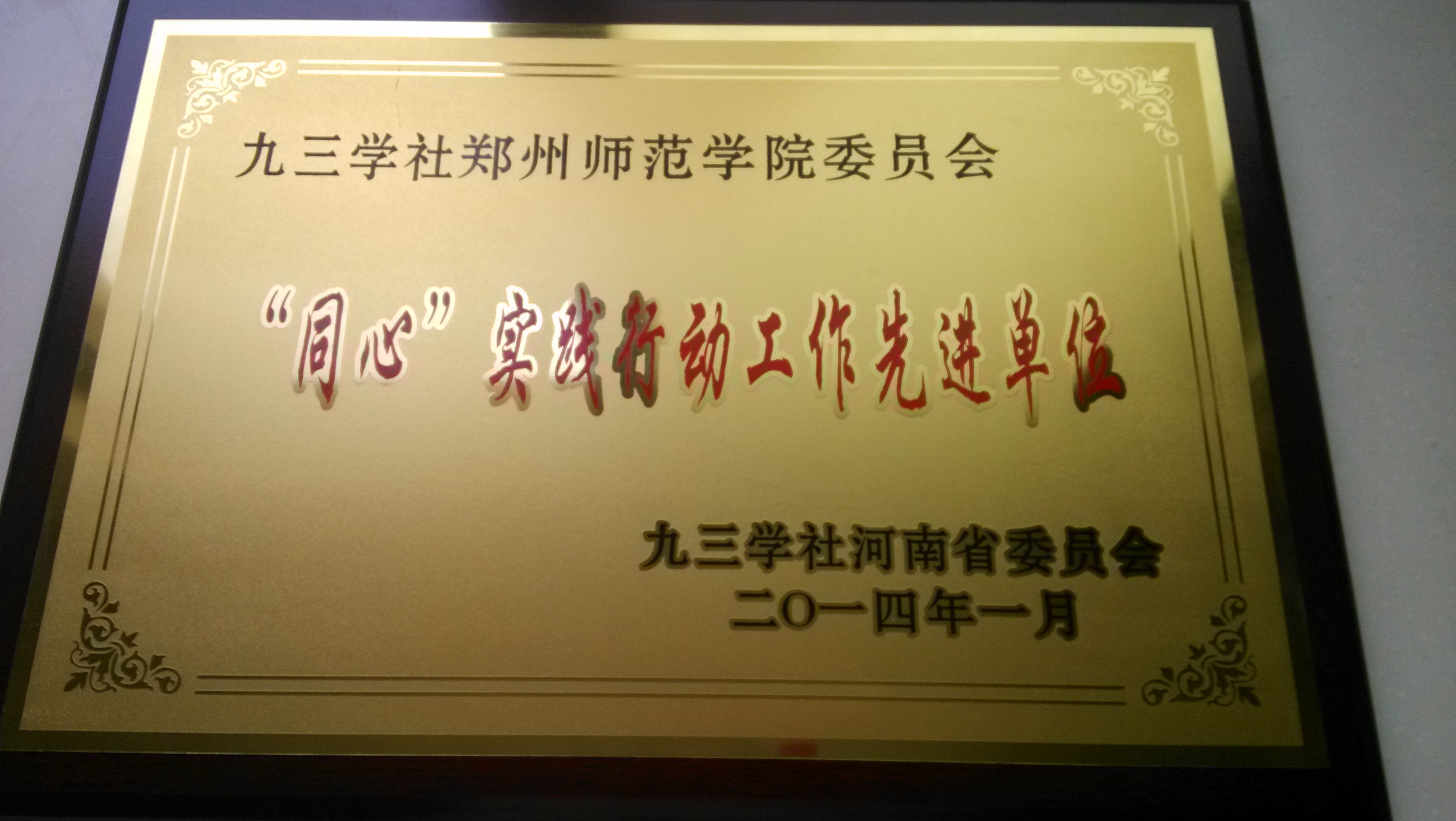 与此同时,九三学社郑州师范学院委员会还获得了九三学社省委授予的“组织工作先进单位”、“‘同心’实践行动工作先进单位”两项荣誉,九三学社郑州师范学院委员会秘书长丁明秀荣获九三学社河南省委“组织工作先进个人”。