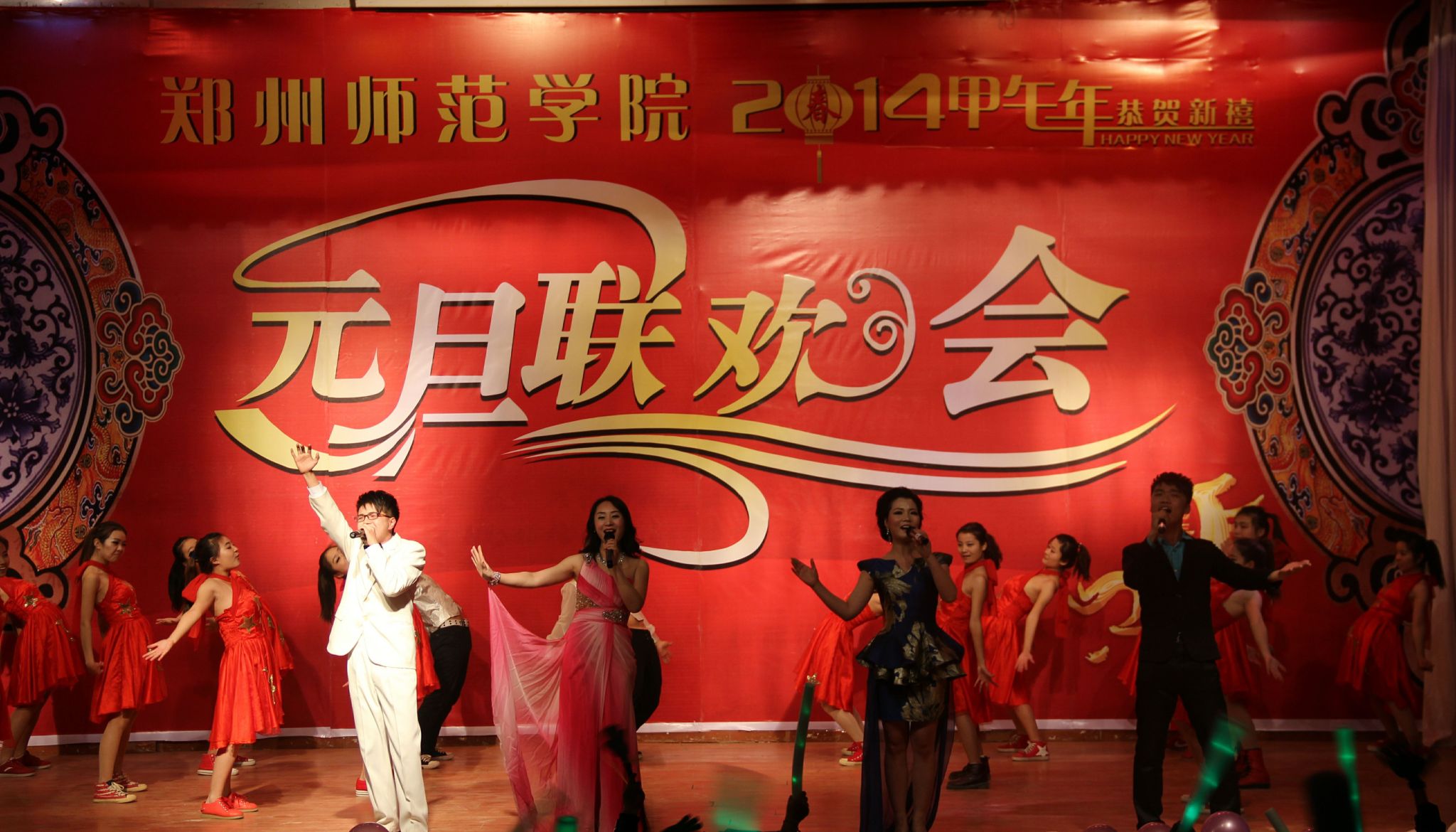 在阵阵的掌声中,开场舞《中国范儿》拉开了此次晚会的序幕。教工合唱团的合唱《春天的相拥》、《郑州师范学院校歌》慷慨激昂,自信满满,充满了对未来的信心和勇气;体育科学系带来的舞蹈《啦啦操》以其娴熟的动作、出色的表演博得了在场观众的阵阵掌声。小品《女人的N次方》、情景剧《我是冠军》、相声《拜师学语》情节新颖,主题鲜明,令人忍俊不禁。歌曲《歌曲联唱》、《新贵妃醉酒》以其悦耳的旋律、动听的歌声让人沉浸其中,不能自已;曾经登上过央视和湖南卫视舞台的特殊教育学院的孩子们以其顽强的毅力、丰富的肢体语言出色地完成了舞蹈《妙手生花》,令在场的观众无不为之动容,为其骄傲;才艺展示《沙画表演》、街舞《蜡像馆的梦》生动活泼,富有青春与活力。晚会在团委及各系团总支演唱的歌曲《相亲相爱一家人》中落下帷幕。