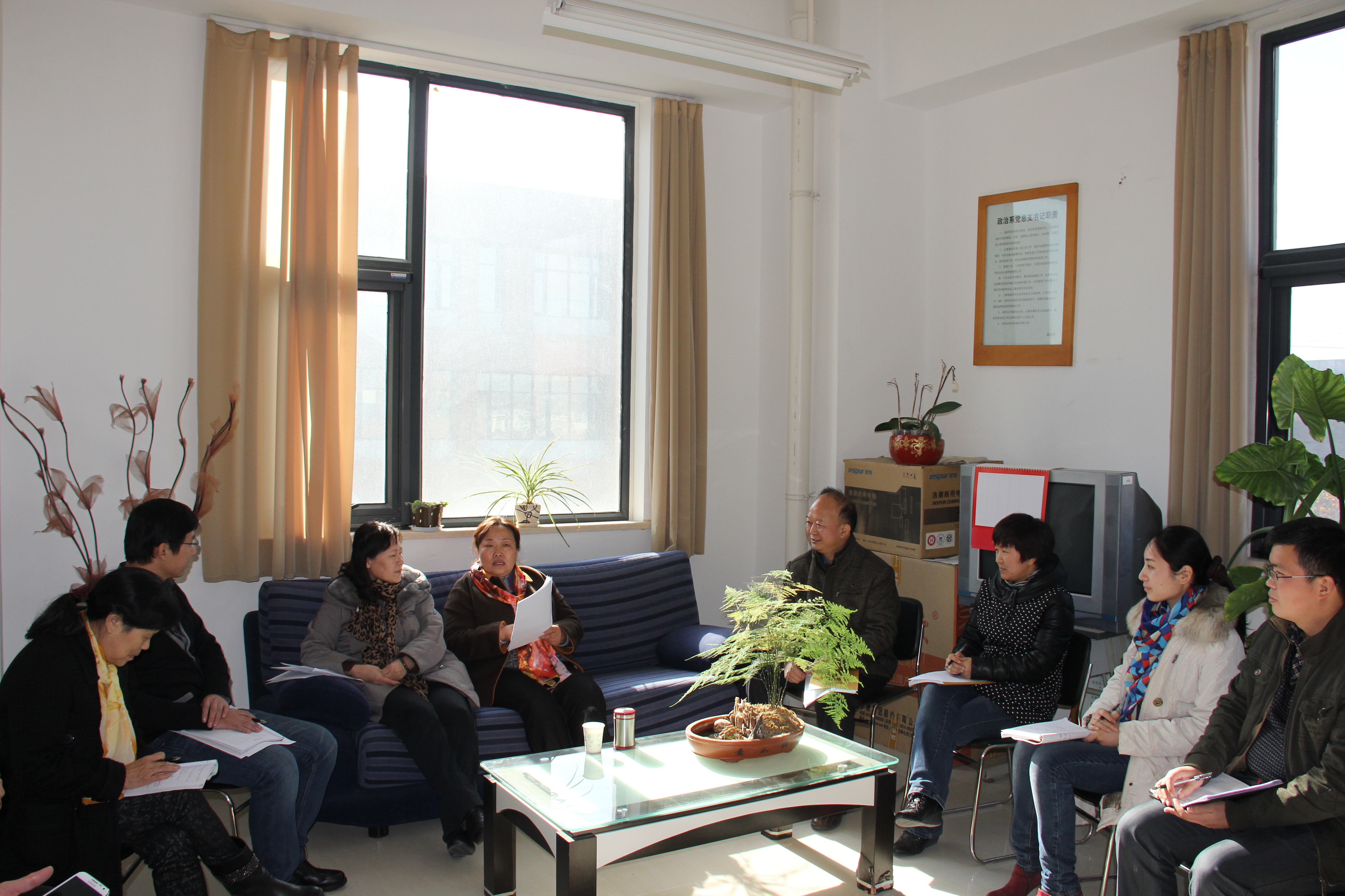 为全面了解各院系本学期学校重点工作落实情况,12月11日,党委书记于向英在党政办、教务处、学生处等部门负责人的陪同下,先后深入文学院、历史文化系、政治与公共管理系、外国语学院、体育科学系进行调研。