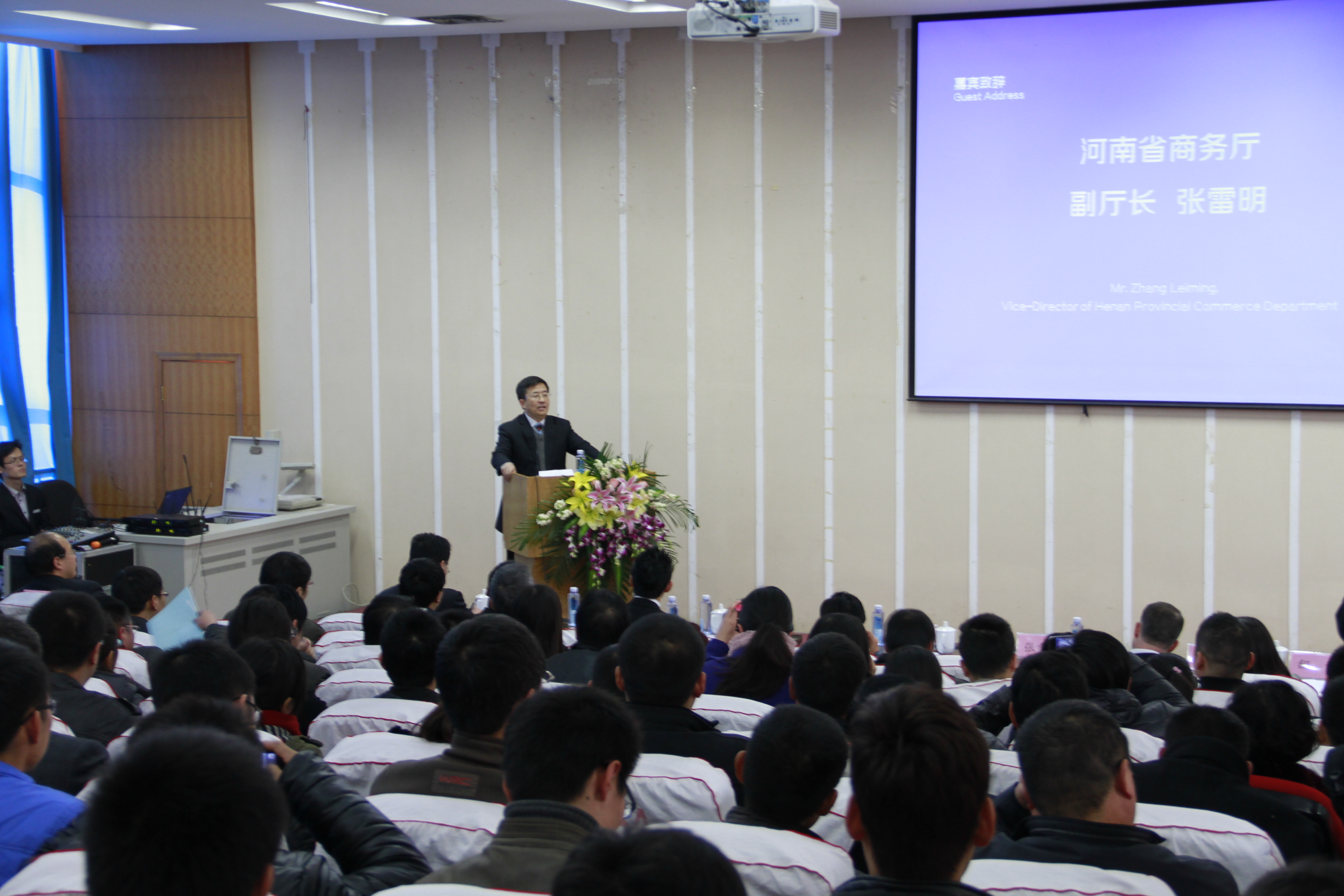 12月13日下午,“河南省跨境电子商务应用培训会”在我校举行,这也标志着由河南省网络营销协会与我校和省内知名电商企业联合创办的“河南省电子商务继续教育基地”正式落户我校。