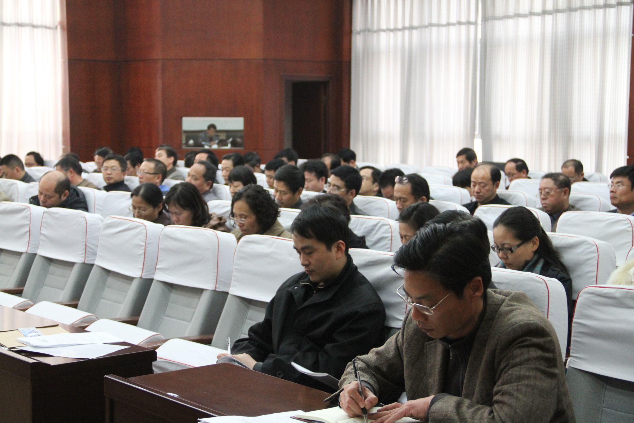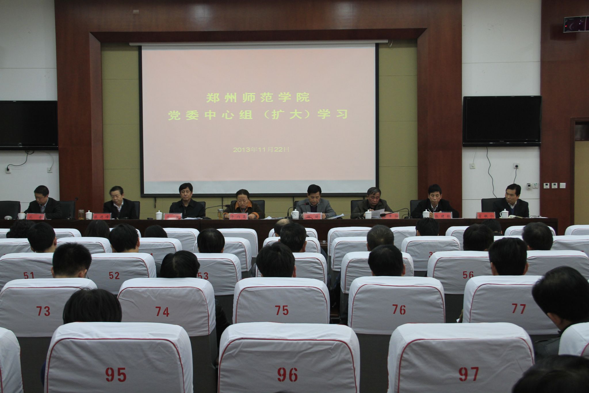 11月22日下午,我校党委在十楼报告厅举行中心组扩大会议,组织学习党的十八届三中全会精神。党委书记于向英主持会议,党委副书记、校长赵健传达了省委文件。校领导弓民、翟幸福、张进峰、张建航、孔青、贾敏仁和学校副处级以上干部一百多人参加了学习。