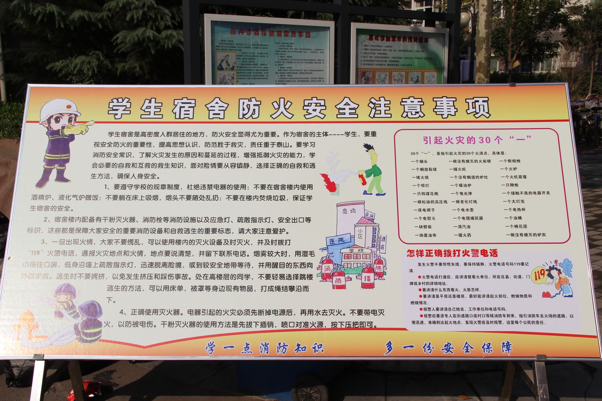 为了向广大师生普及消防安全知识,提高自防自救能力,预防火灾事故的发生,我校消防安全及绿色节能环保校园文化系列活动于11月13日拉开帷幕。