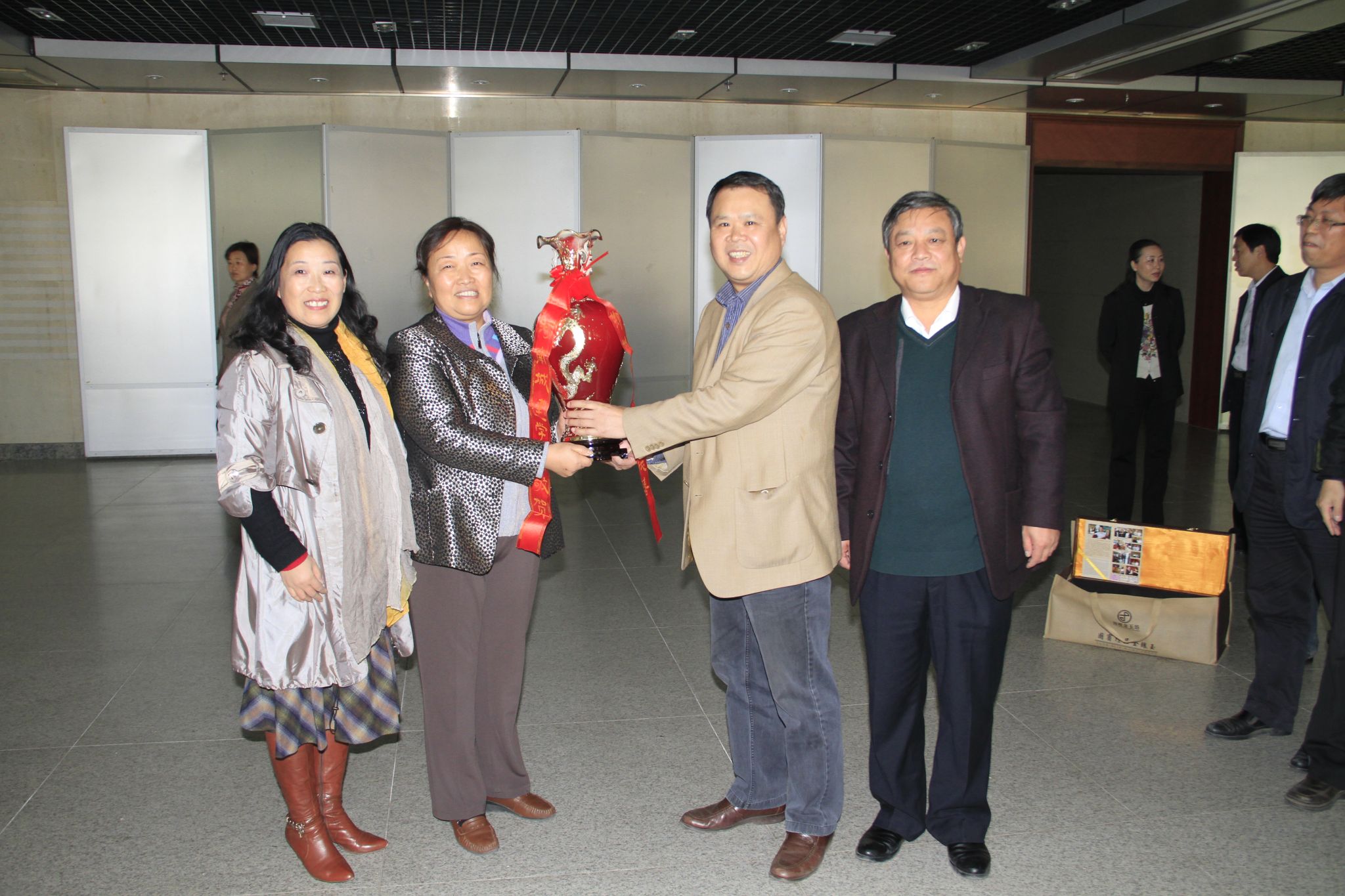 挂牌仪式结束之后,省教育厅正厅级巡视员张健和教育厅学位办主任贾正国荣获此次桥牌邀请赛的一等奖,由我院党委书记于向英为获奖人员颁发奖项并致以真诚的祝贺。