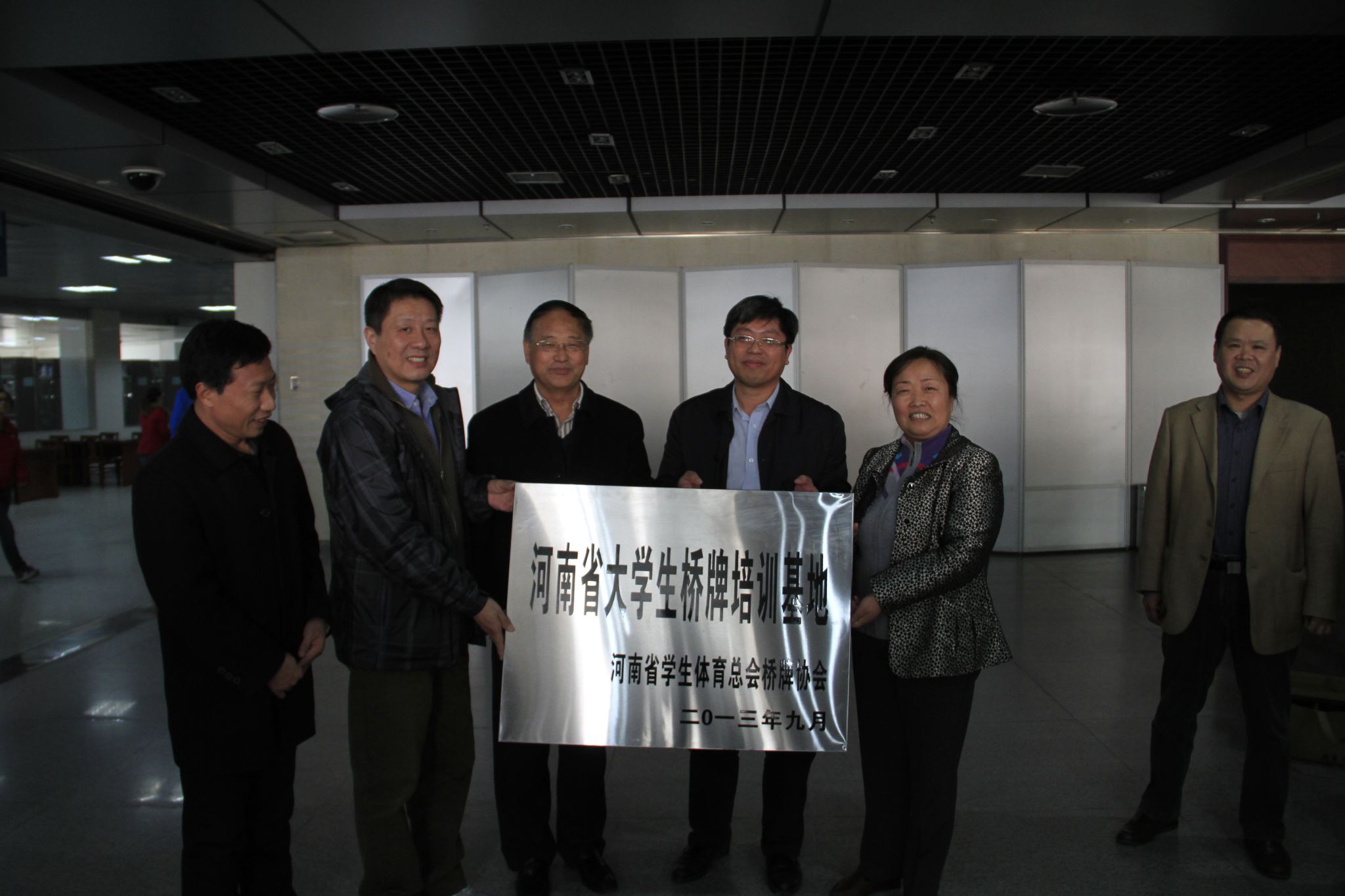 11月19日下午,河南省大学生桥牌培训基地挂牌仪式暨桥牌邀请赛于我校图书馆三楼隆重举行。省教育厅正厅级巡视员张健,教育厅学位办主任贾正国,省教育厅体卫艺处副处长高翔,省桥牌协会秘书长杨发星及我校党委书记于向英出席挂牌仪式。