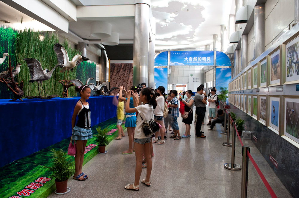 在市科技馆展出时正值暑假期间,很多小朋友前往参观,起到了很好的科普宣传效果,从小培养他们爱护环境,爱护鸟类,敬畏生命。
