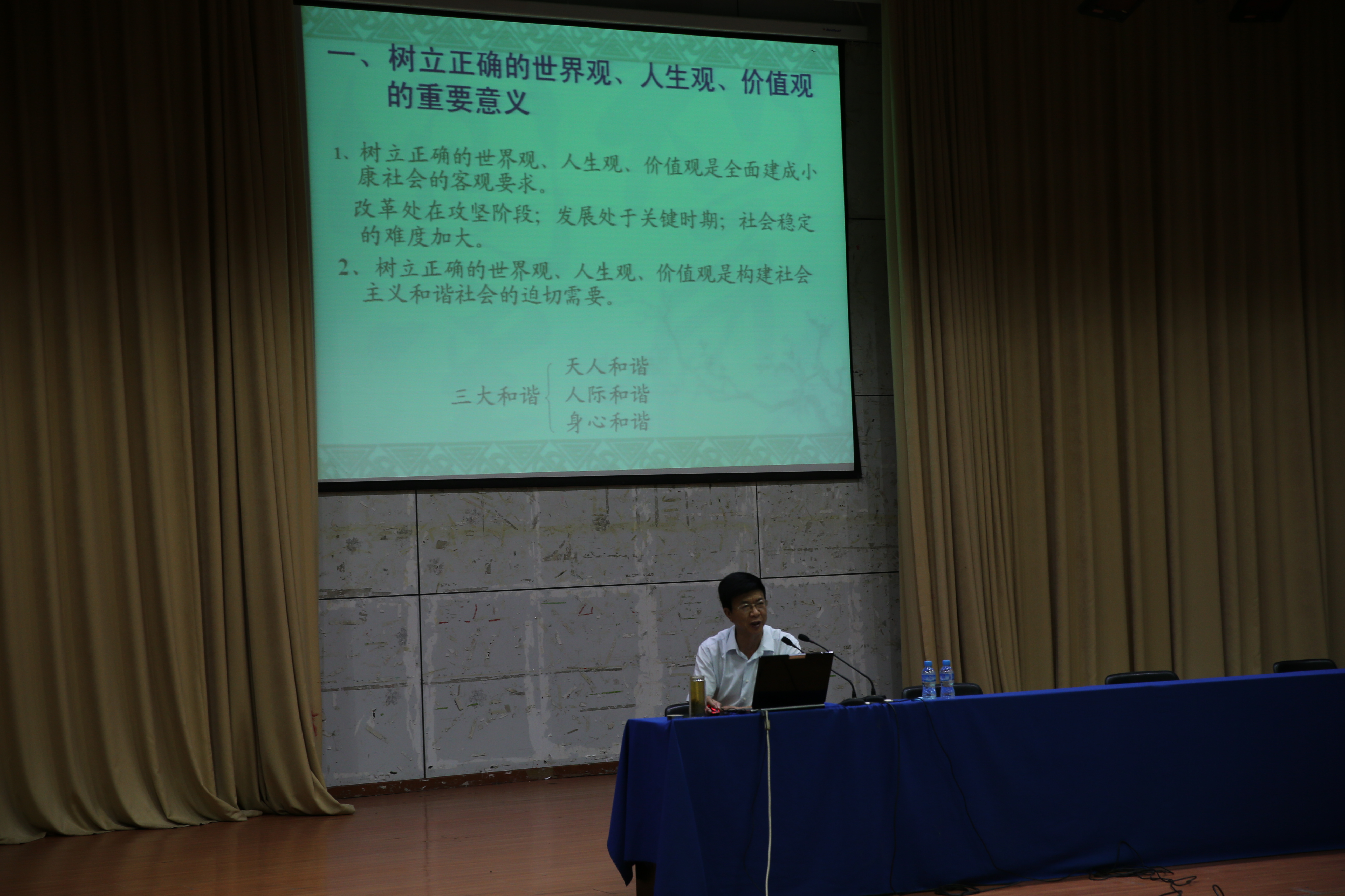 中共河南省委党校副校长胡隆辉教授做了题为“树立正确的世界观、人生观和价值观”的专题报告。胡教授分别从树立正确的世界观、人生观和价值观的重要意义、科学内涵和根本方法三个角度进行了详细的讲解。报告中强调了要通过认真学习、深入实践、完善制度和加强修养树立正确的世界观、人生观和价值观。胡教授报告旁征博引,妙语连珠,富有新意,使学员们受到了深刻的“三观”教育。