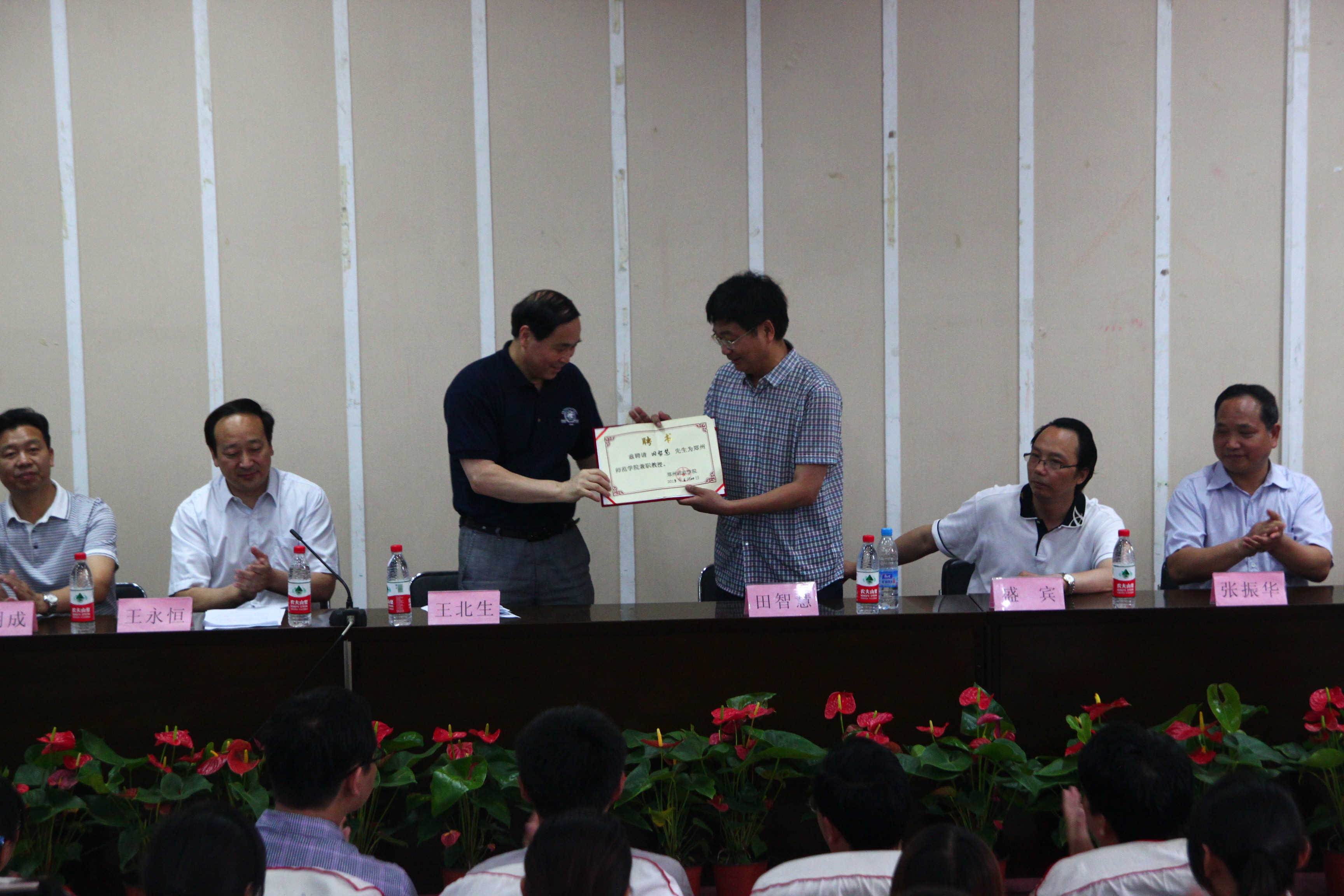 王北生副校长为地理环境仿真研究中心授牌,并为郑州大学环境与水利学院田智慧教授颁发我校兼职教授聘书。