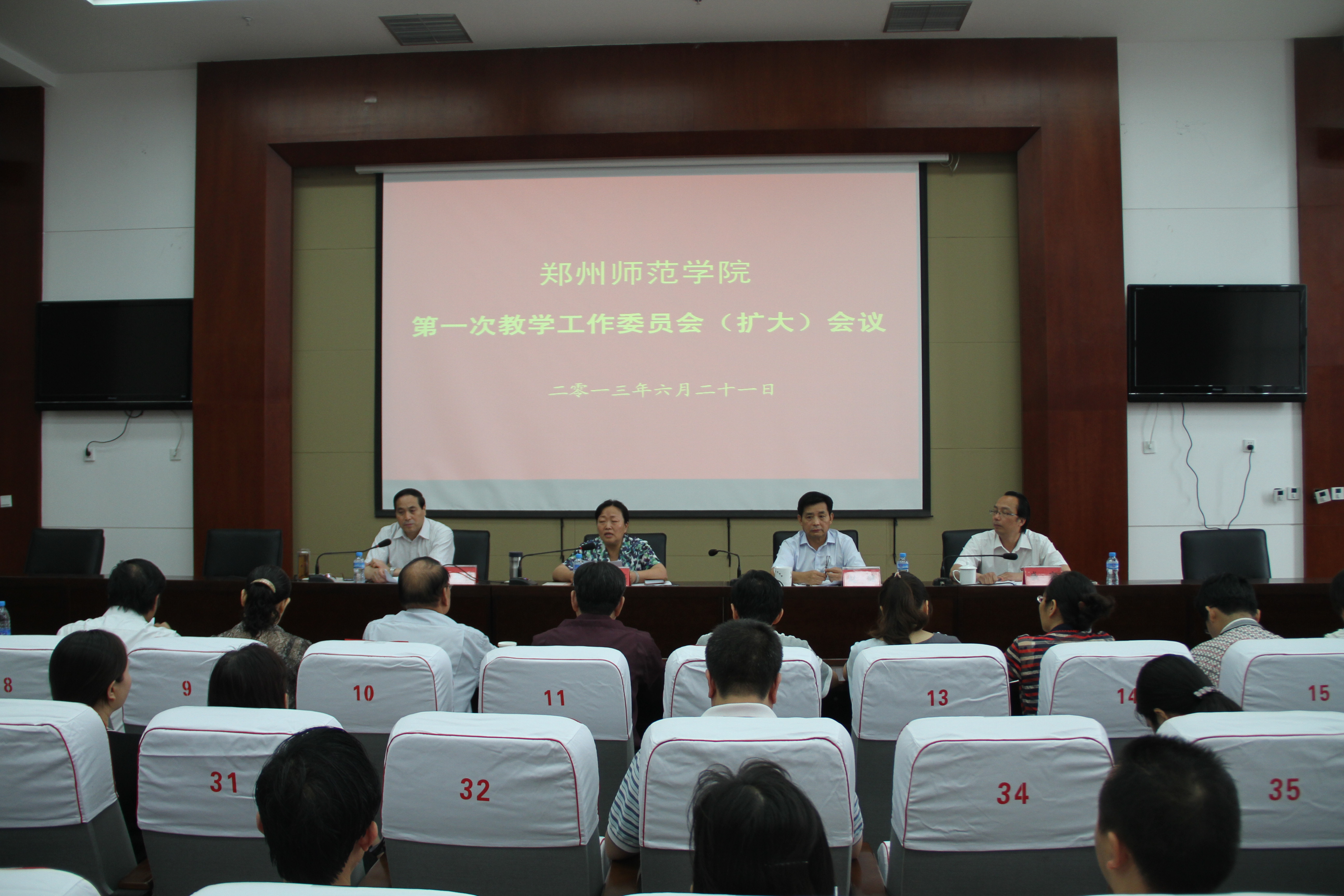 会议分成两个环节。第一环节:由党委书记于向英宣读《郑州师范学院关于成立教学工作委员会的通知》文件,并对委员提出明确要求;教学工作委员会主任赵健校长宣布《郑州师范学院教学工作委员会章程》,指出:本次教学工作委员会会议是一次承上启下的会议,我们要在教学工作大会以来取得成绩的基础上总结成果经验,理清思路,做好计划,为实现合格本科目标做好顶层设计和建设路线图。同时赵校长要求广大教学管理干部既要继承传统做法,又要改革创新,既要重点突破,又要按本科教学规律来规范教学管理。教学工作委员会办公室主任、教务处处长盛宾安排了《郑州师范学院本科人才培养方案修订指导性意见》、《2013年郑州师范学院新升本专业人才培养方案》、《教学工作管理制度建设计划》、《校级本科教学工程项目管理制度》等四项审议内容和征求意见办法,然后各位委员和与会人员分组进行了讨论。