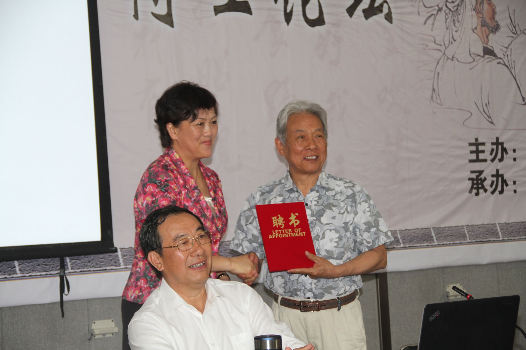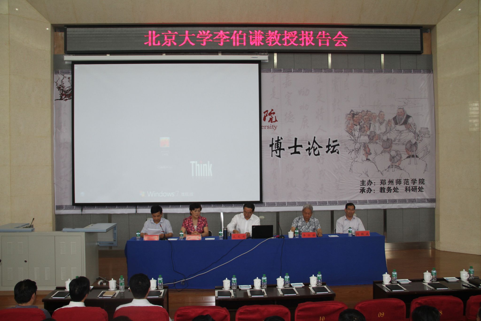 副市长刘东为李伯谦教授颁发郑州师范学院顾问聘书。报告会上,李伯谦教授以“中华文明历程的启示”为主题进行讲解,通过分析中国古代传统历史观为切入点,以科学历史观为基础,把古国——方国——帝国总结为中国古代文明演进的三个主要阶段;把突出神权和突出军权、王权区分为两大模式,以此梳理了中华文明的发展脉络。并指出要以史为鉴,发扬优秀传统,总结经验教训,对未来科学发展、构建和谐社会都具有重要的意义。在报告的最后,李伯谦教授对学生提问进行了逐一回答。