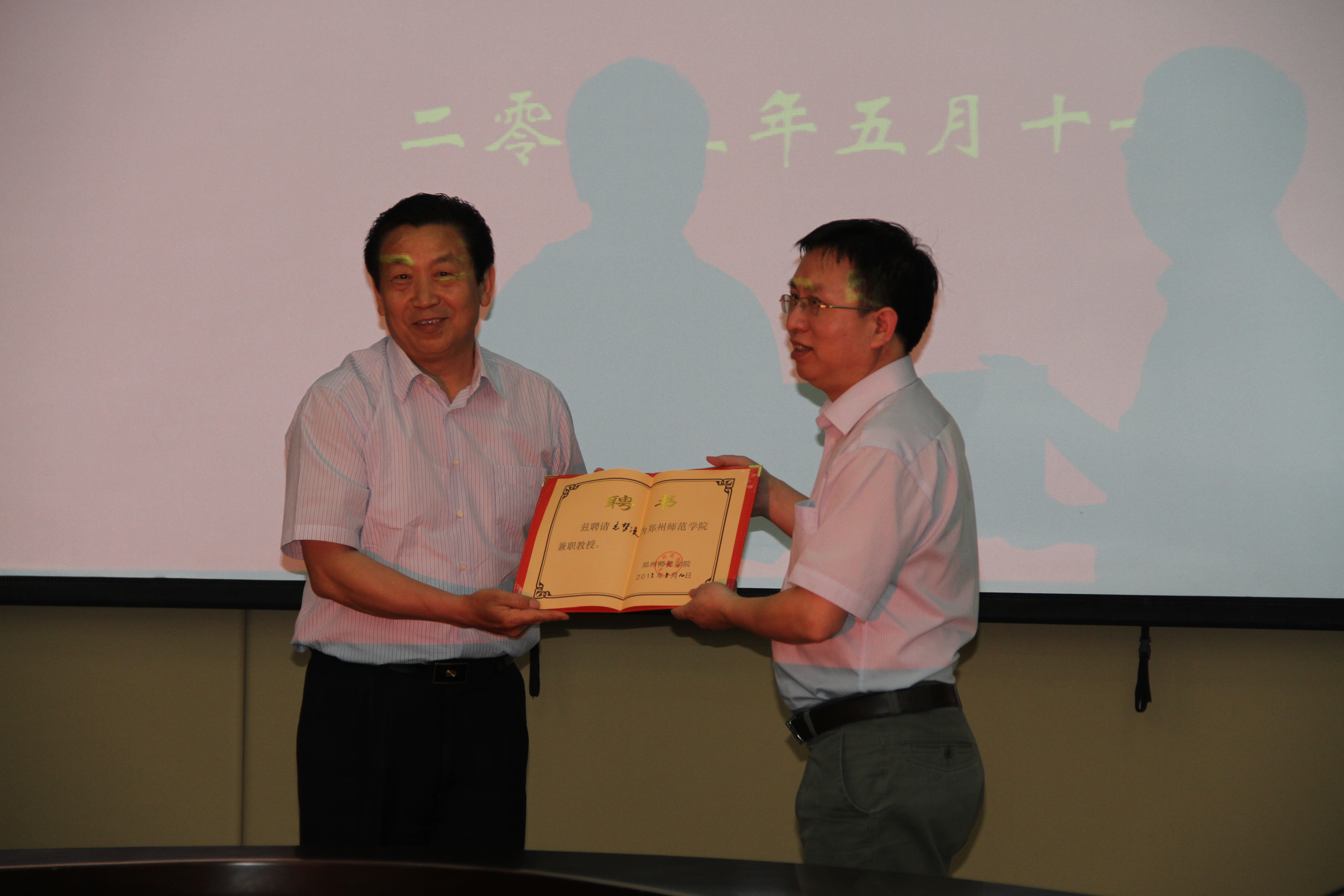 校党委副书记张进峰代表我校对毛梦溪部长一行的到来表示热烈的欢迎,并简要介绍了我校统战工作的情况和校民进支部在促进学校发展及参政议政上起到的积极作用,并代表学校向毛梦溪部长颁发了客座教授聘书。