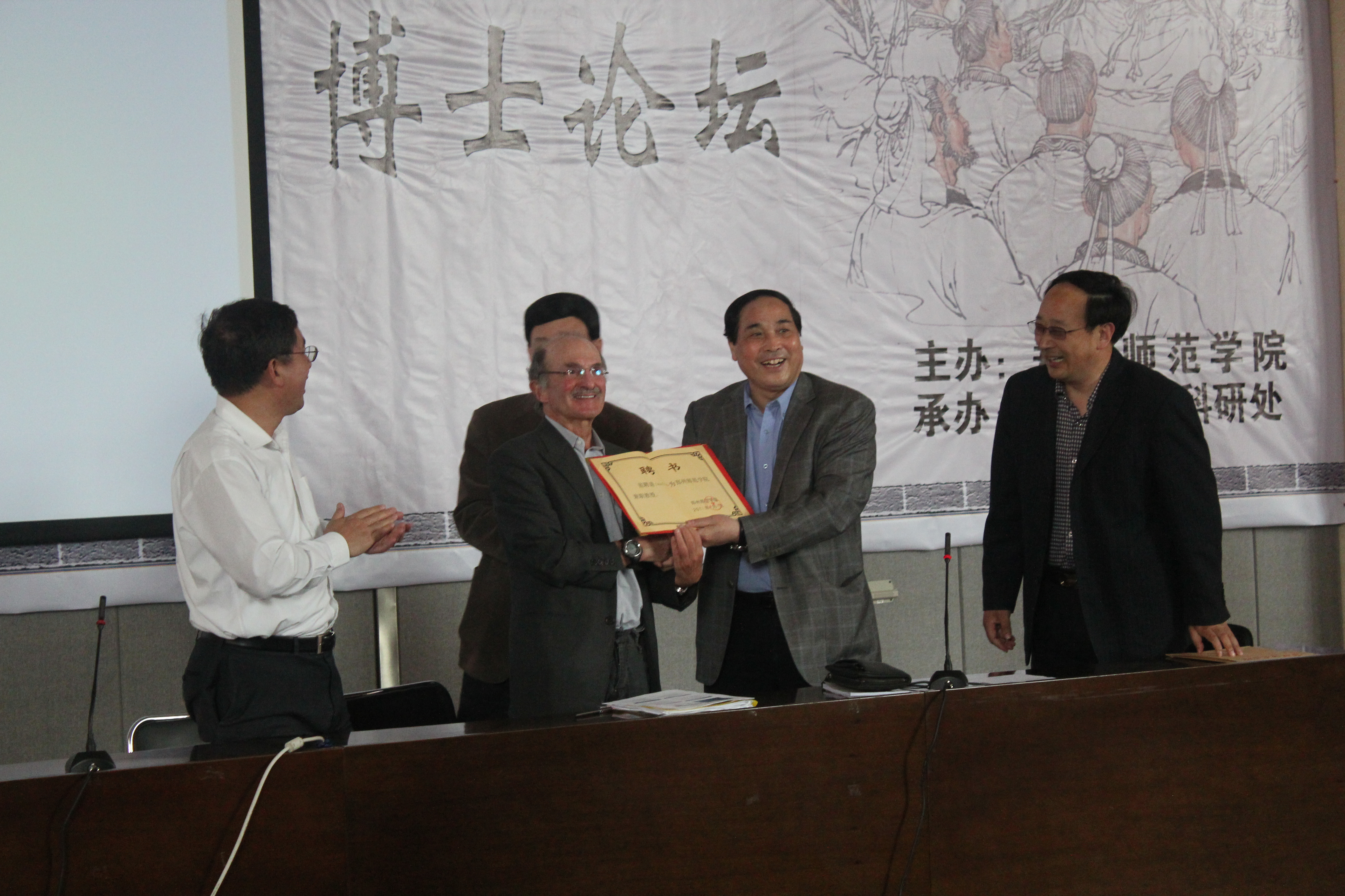 4月27日下午,美国科学院院士Charles Cantor在东校区A301名家讲堂带来了一场关于“生物基因遗传学”主题的讲座,讲座由副校长王北生主持,并由副校长王北生为Charles Cantor院士颁发了兼职教授证书。