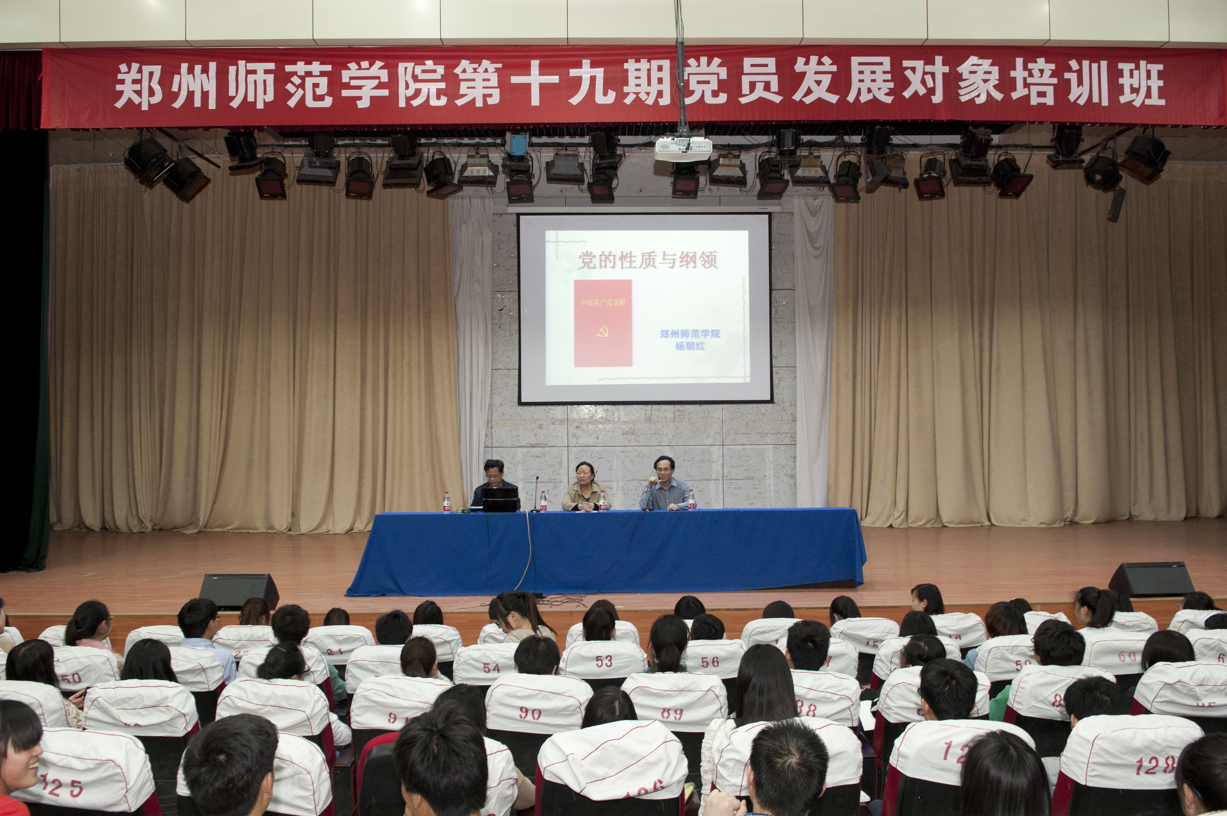 杨朝红处长作了此次培训班的第一讲——《党的性质和纲领路线》和《青年大学生与中国共产党》。同时,政治与公共管理系党总支书记龚绍红在1号楼报告厅为学生作了题为《中国共产党的指导思想》的报告。