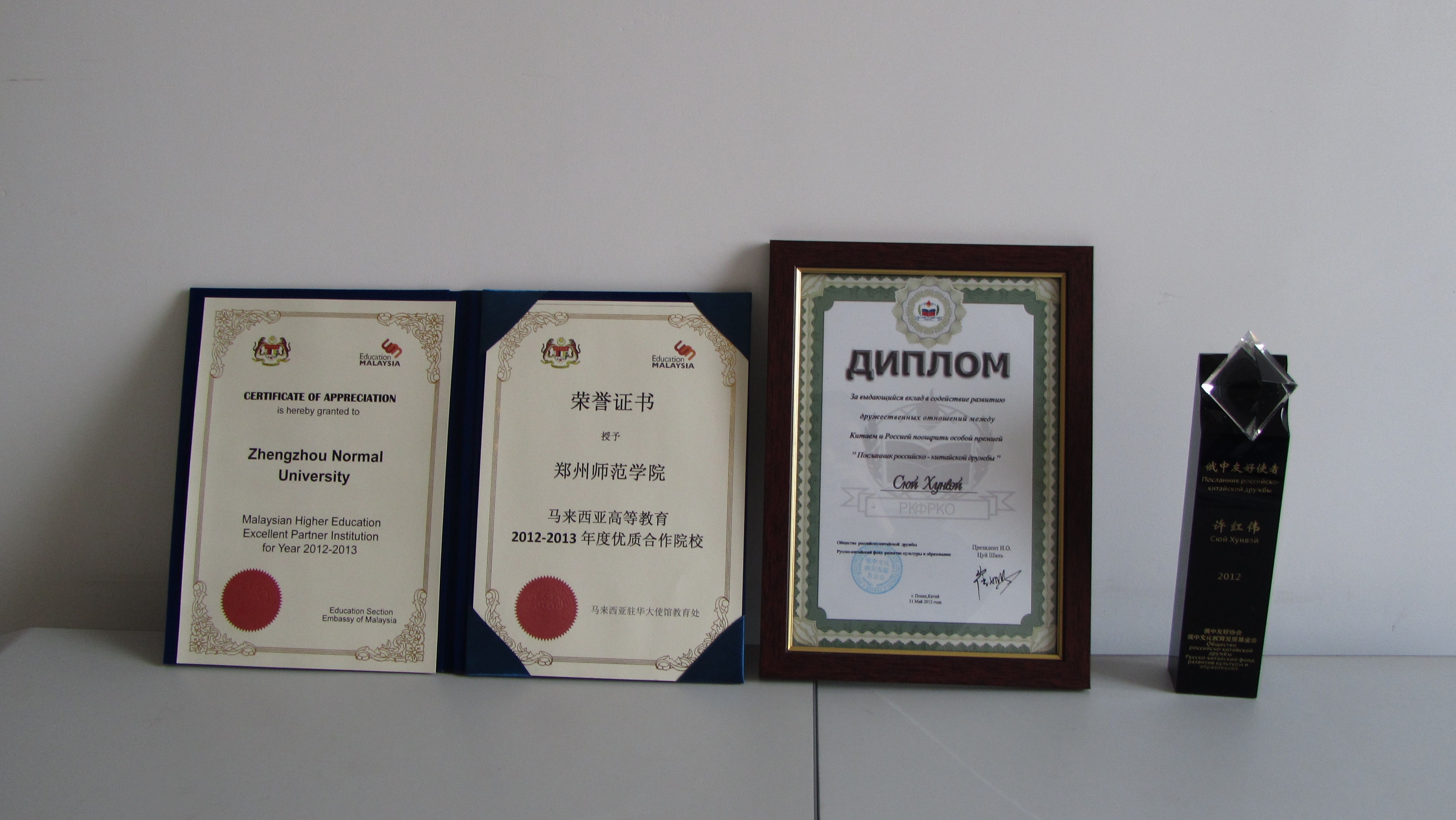 在即将过去的2012年,我校国际合作与交流处在校党委与行政的指导下,经过认真工作,获得了由马来西亚驻华大使管教育处颁发的“马来西亚高等教育2012——2013年度优质合作院校”称号。此次评选是马来西亚大使馆教育处在众多合作院校中遴选出来的,我校能获此殊荣,是马来西亚驻华使馆对我校合作办学能力的认可。