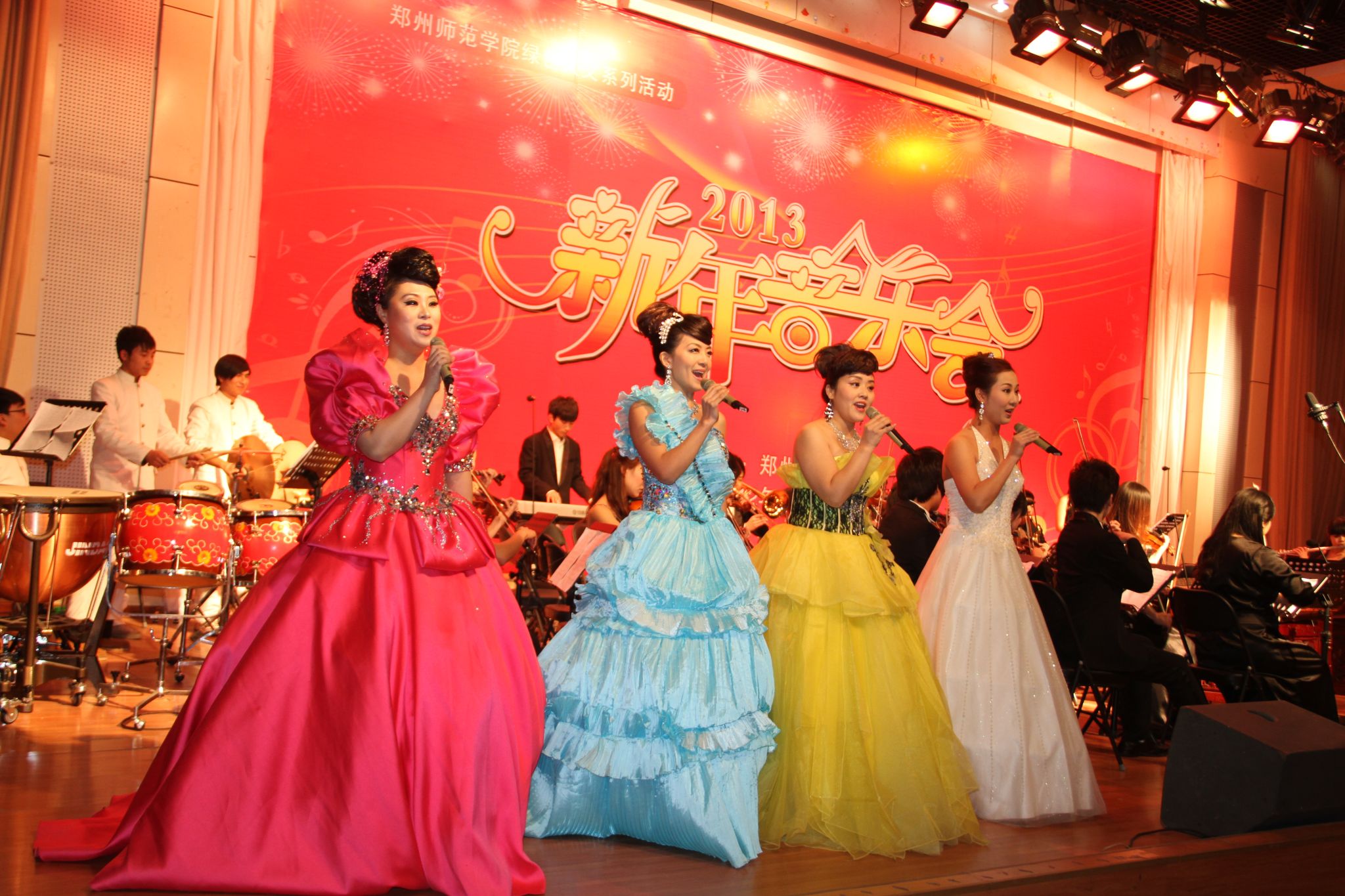 丝竹声声细腻流畅,花好月圆轻歌曼舞,在一阵阵掌声中,由民族管弦乐团、学生合唱团,邢丽萍指挥的《好日子》拉开了此次音乐会的序幕。由民族管弦乐团演奏的《紫竹调》、《赛马》处处洋溢师院节日里喜庆的气氛;电声乐队演奏的《科罗拉多河上的月光》把月光般的清纯呈现的淋漓尽致;由特殊教育系董晶晶演唱、电声乐队伴奏的《回家》勾起了远在异国他乡游子的思乡之情;电声乐队演奏的《克罗地亚狂想曲》活力四射,充满激情;由实验民族乐团演奏的歌曲《绣荷包》用荷包传递着爱和祝福;由肖扬演唱、实验民乐团伴奏的《思恋》以其优美的歌声、动听的旋律打动了在场的每一个观众;由曹姝丽、肖扬、万蕾、陈鹏演唱,西洋交响乐团伴奏的《我和我的祖国》共同祝福伟大的祖国更加繁荣昌盛、永远朝气蓬勃,她们豪情满怀的演唱把现场的气氛推向高潮。最后,晚会在西洋交响乐团的《拉德斯基进行曲》中圆满地落下帷幕。
