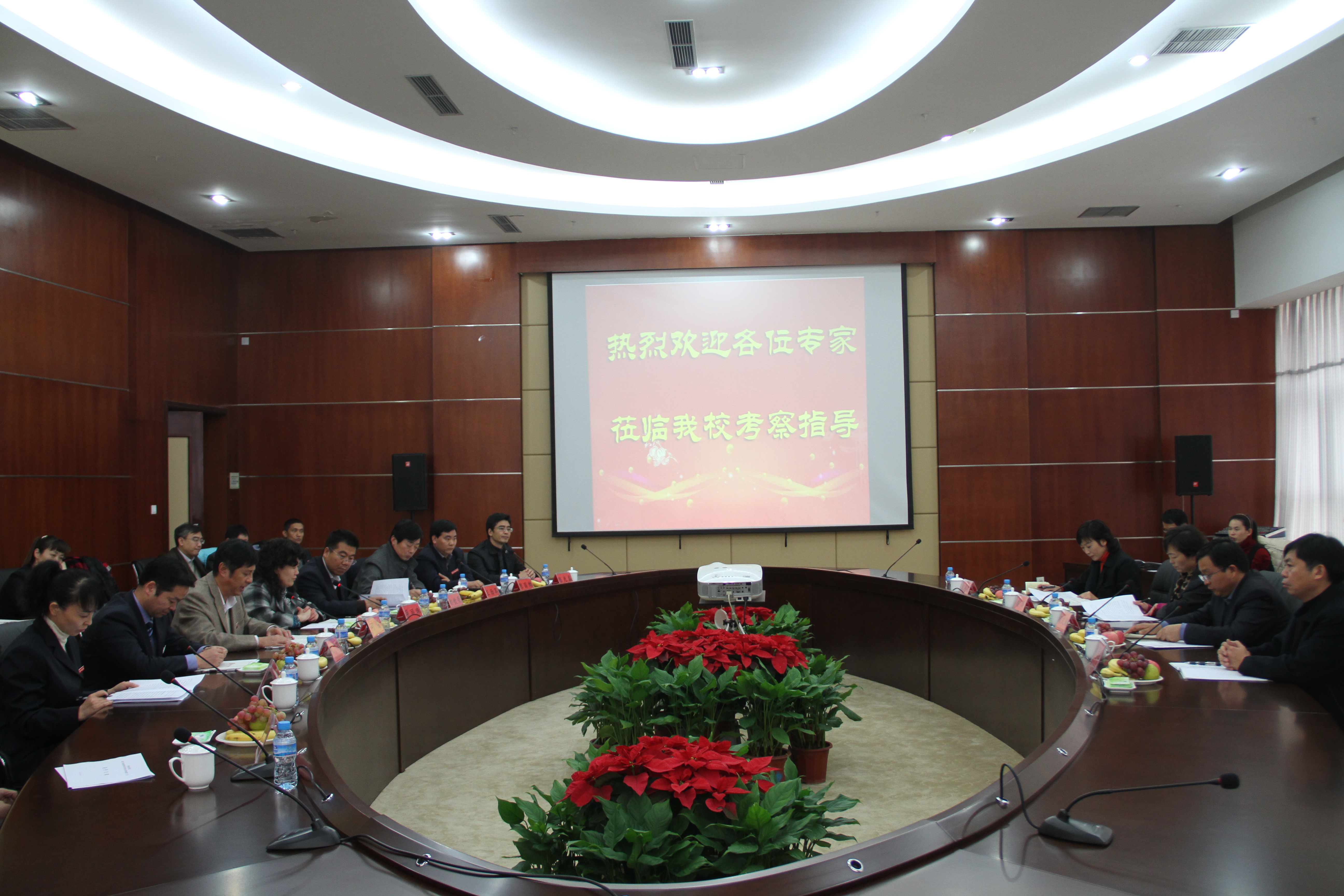 在图书馆十楼会议室,校党委副书记弓民对检查组前来检查工作表示欢迎和感谢,并简要介绍了我校近年来的发展情况。副校长蒋丽珠向专家组汇报了我校艺术类专业(音乐学等三个本科专业,音乐教育等七个专科专业)的基本情况、专业建设目前存在的问题以及我校研究确定的整改措施。