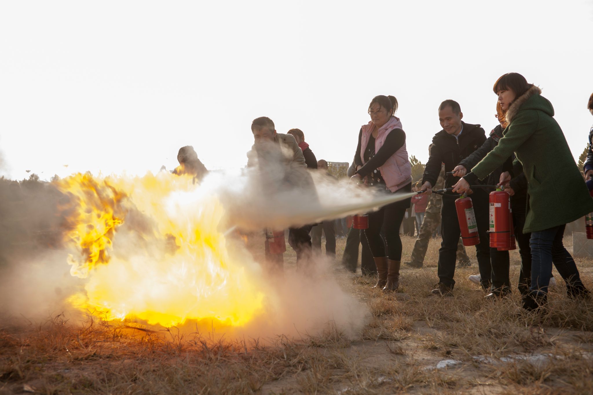 之后,在消防官兵指导下我校师生在操场进行了灭火演练。