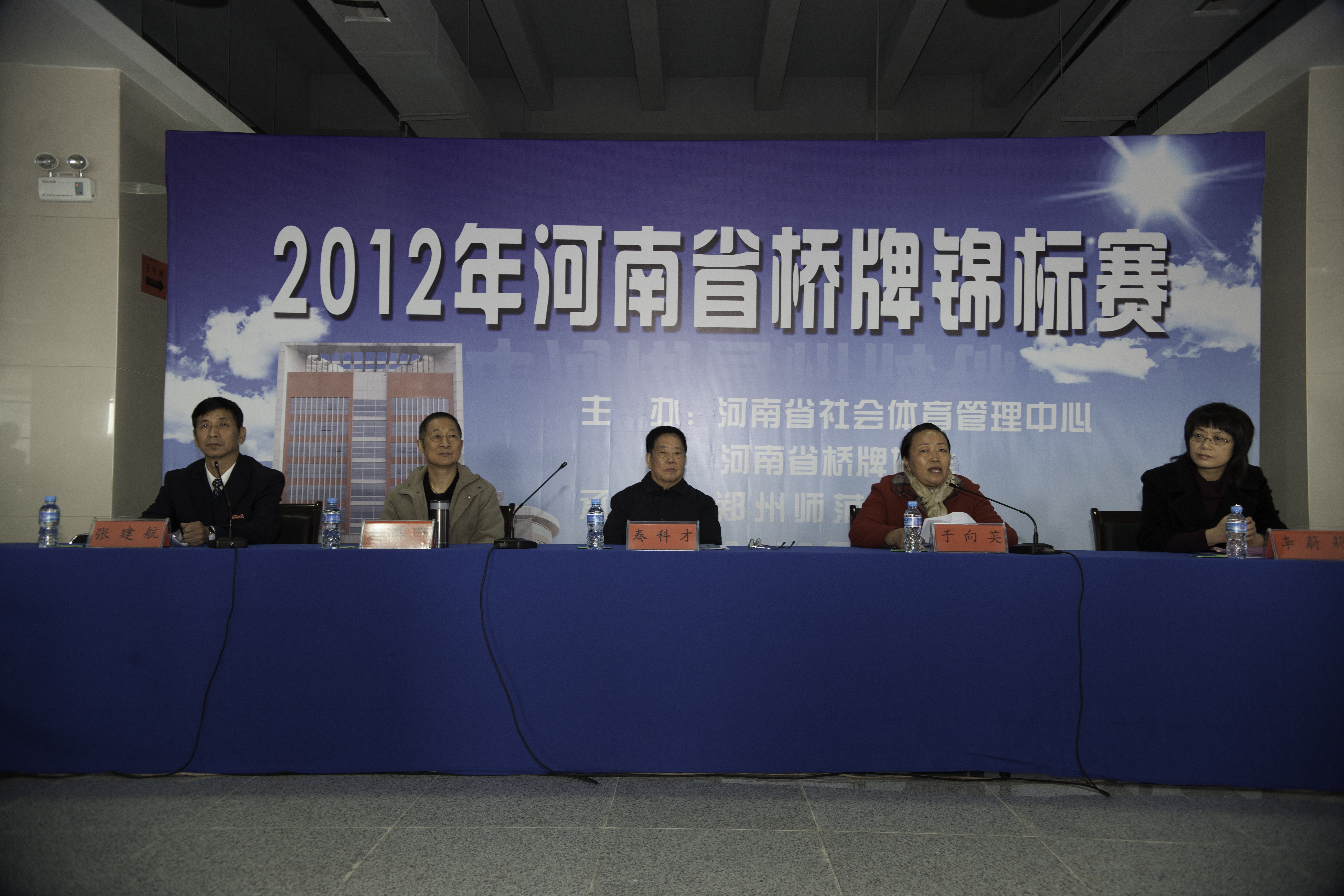 11月16日下午,由省社会体育管理中心、省桥牌协会共同主办,我校承办的2012年河南省桥牌锦标赛在大学生就业指导中心隆重开幕。