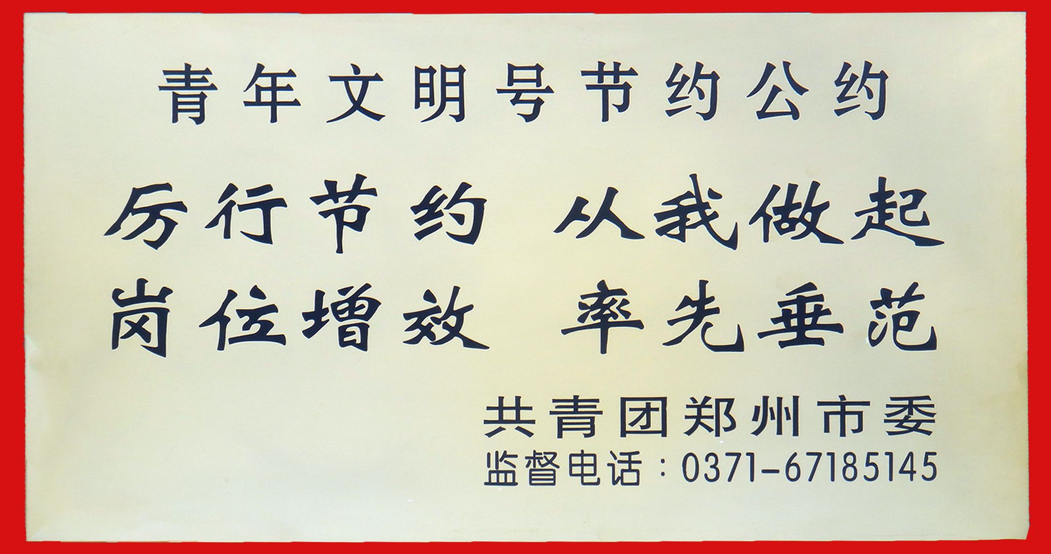 青年文明号是弘扬职业道德,体现青年文明的有效载体。创建精神文明号是促进青年成长成才,树立青年良好形象,展现当代青年精神风貌的的有效途径。近日,在共青团郑州市委的指导下,我校荣获“2012—2016年度青年文明号”荣誉称号。