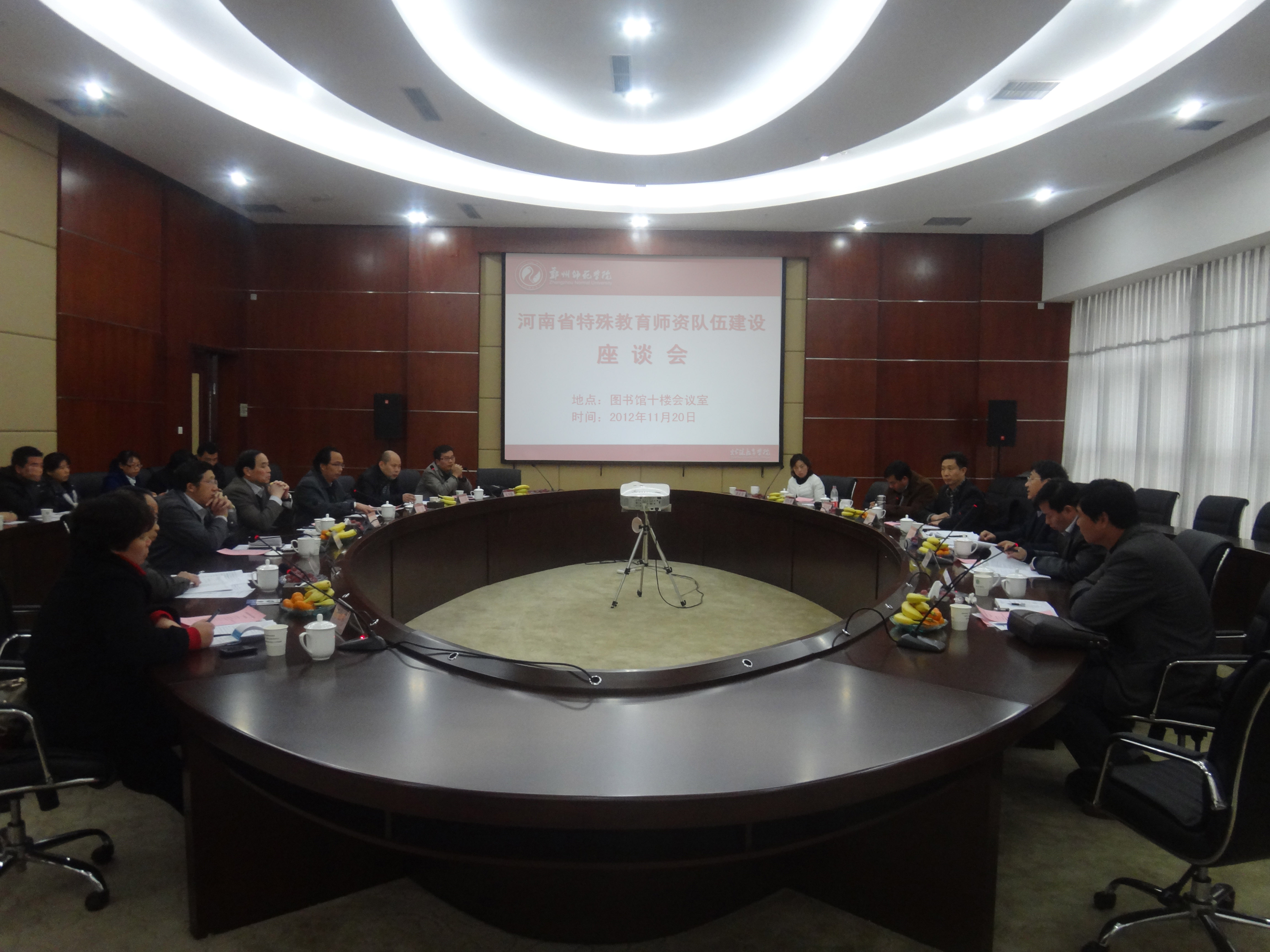 为进一步加强我省特殊教育教师队伍建设,提升特殊教育师资力量。11月20日上午,“河南省特殊教育师资队伍建设座谈会”在我校图书馆10楼会议室召开。河南省教育厅师范处朱自锋处长、郑州市教育局师范处赵力勇处长、我校副校长王北生等有关领导出席了此次座谈会。