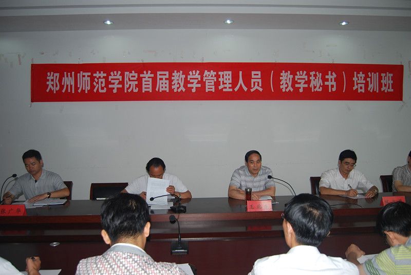 为进一步强化教学管理,充分发挥院系教学管理的职能作用,提高教学秘书的业务素质和管理水平,受学校委托,我校于8月27至8月29日,在郑州市金水河源培训基地举办了首届教学管理人员(教学秘书)培训班。我校副校长王北生到会并作专题讲话。我校18个院系的教学秘书及教务处全体人员参加了培训。