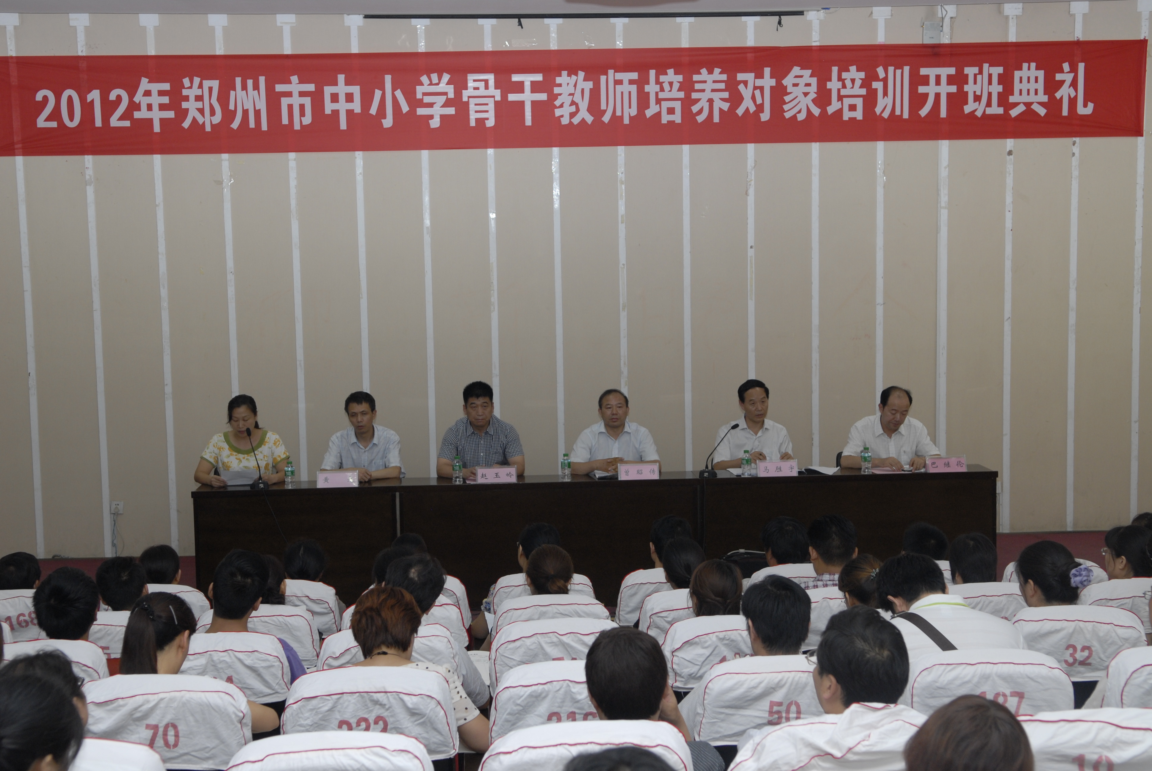 7月18日下午,2012年郑州市中小学骨干教师培养对象培训班在我校开班,郑州市教育局副局长曾昭传、副校长赵玉岭、教育局师训处副处长马胜宇等领导参加了开班典礼。