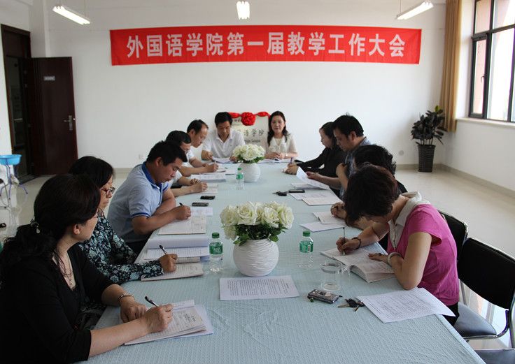 5月15日下午,外国语学院在东校区A509召开了第一届教学工作大会,外国语学院院长张梦、党总支书记郑银锋、党总支副书记曹国强、副院长马莉,以及外国语院全体教职工参加了此次会议。