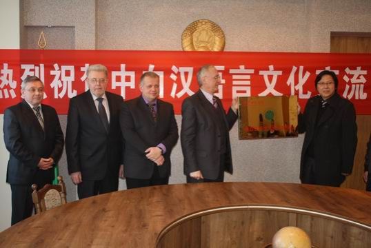 3月23日,我校与白俄罗斯国立文化艺术大学汉语言文化交流中心举行成立仪式,赵健院长的特使国际合作与交流处负责同志许红伟博士出席成立仪式,白俄罗斯国立文化艺术大学的校长斯威特洛夫教授宣读了关于合作成立汉语言文化交流中心的决定。我国驻白俄罗斯大使馆文化处向汉语言文化交流中心致祝贺词。