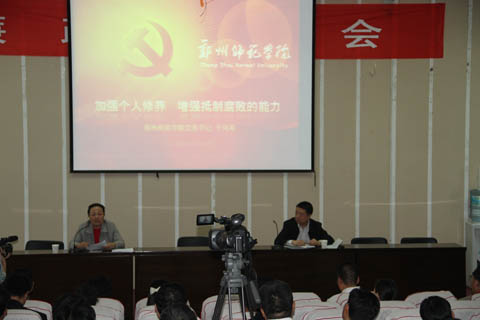 为了贯彻落实河南省纪委和郑州市纪委《关于在引导干部中进行廉政教育》文件精神,进一步提高领导干部的领导管理水平,根据校党委安排,9月26日下午,我校在1号楼报告厅召开副科级以上干部廉政谈话会。全体校领导、副科级以上干部参加了此次谈话会。会议由党委副书记、纪委书记孔青主持。