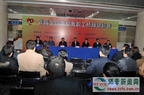 2月24日下午,首届全国高校教职工桥牌锦标赛在我校胜利闭幕。河南省教育厅巡视员张健,中国大学生体育协会领导杨路、于向英、何志洪、金周,裁判长徐明等参加了闭幕式。闭幕式由我校党委副书记、副校长樊豫陇主持。