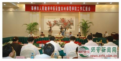 22日下午,郑州市委、市政府在黄河迎宾馆会议中心梅花厅主持召开了郑州市人民政府申报设置郑州师范学院工作汇报会。专家组全体成员,省委常委、市委书记王文超,副市长孙金献,市政协副主席王薇,市政府副秘书长李宪召,市教育局局长翟幸福、副局长葛飞以及我校领导班子、各部门中层领导出席了汇报会。
